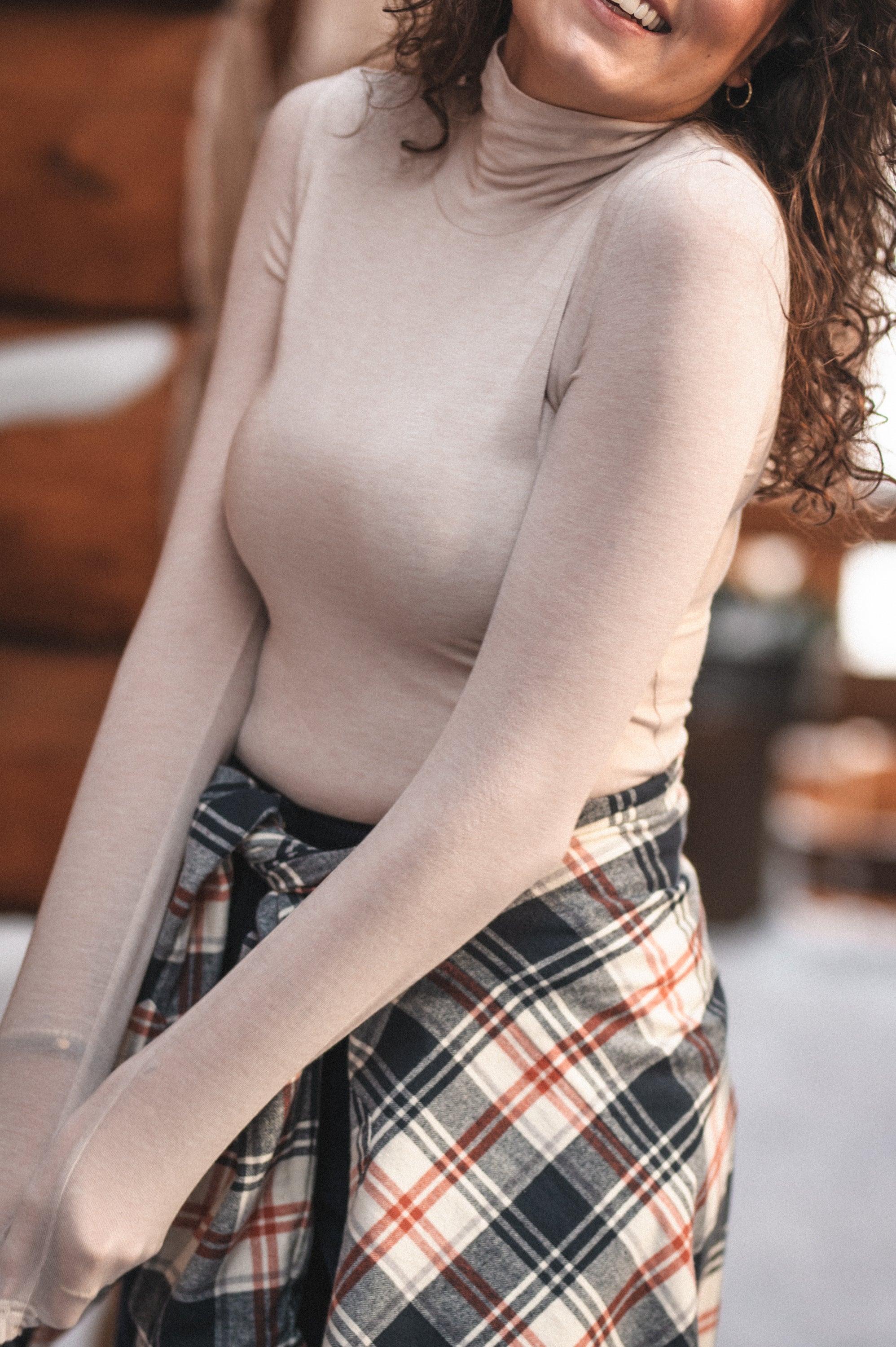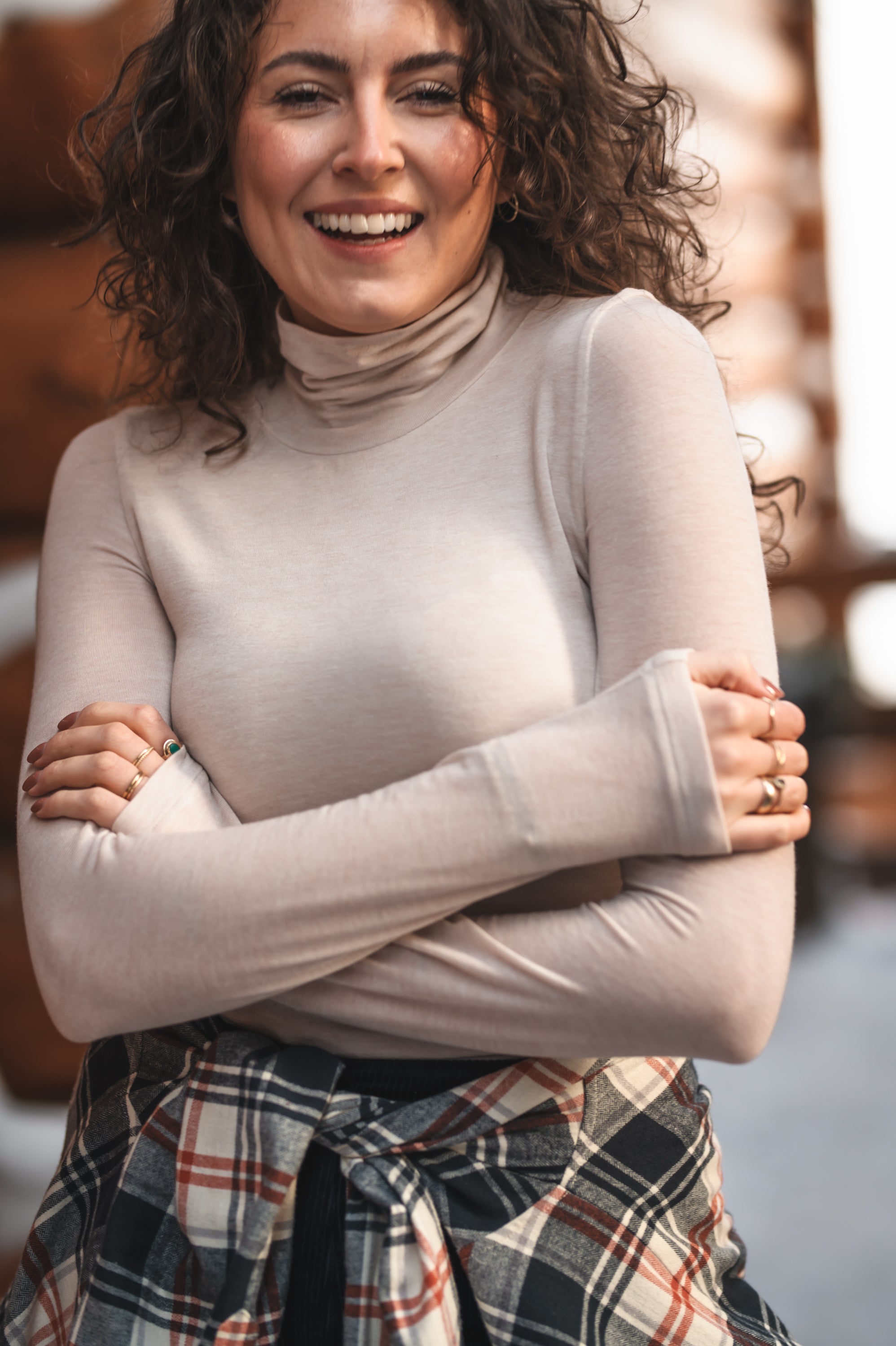 Klasyczny golf o dopasowanym fasonie, który subtelnie podkreśla sylwetkę i sprawdza się jako uniwersowa baza do codziennych stylizacji. Długie, wąskie rękawy nadają mu smukłą linię, a minimalistyczny design podkreśla ponadczasowy charakter modelu. Korpus wykonany z podwójnej warstwy materiału zwiększa komfort noszenia i zapobiega prześwitywaniu, jednocześnie zachowując lekkość formy. Golf uszyty z cienkiej, miękkiej i elastycznej dzianiny, która zapewnia wygodę, swobodę ruchów oraz odpowiedni komfort termiczny.