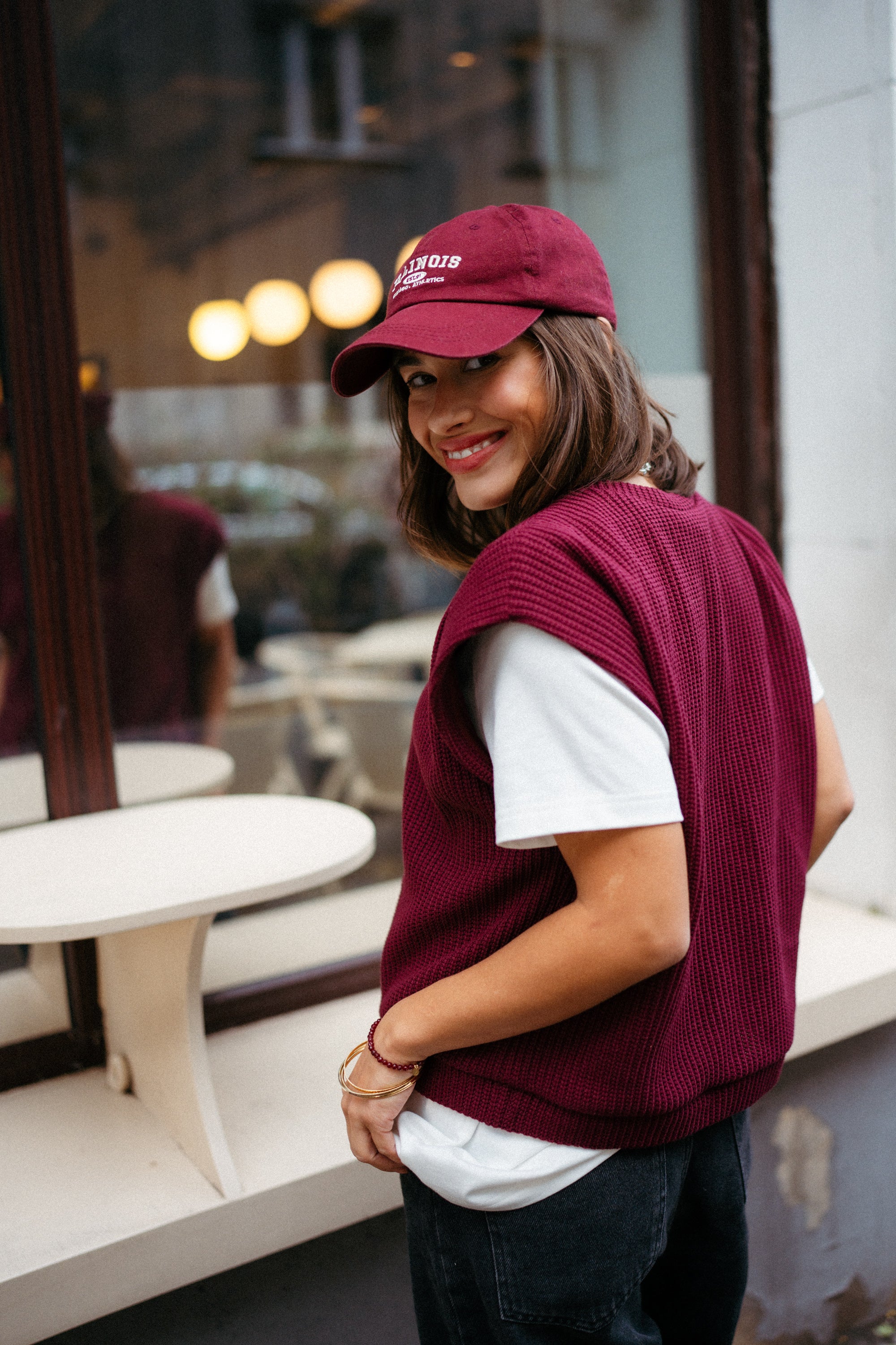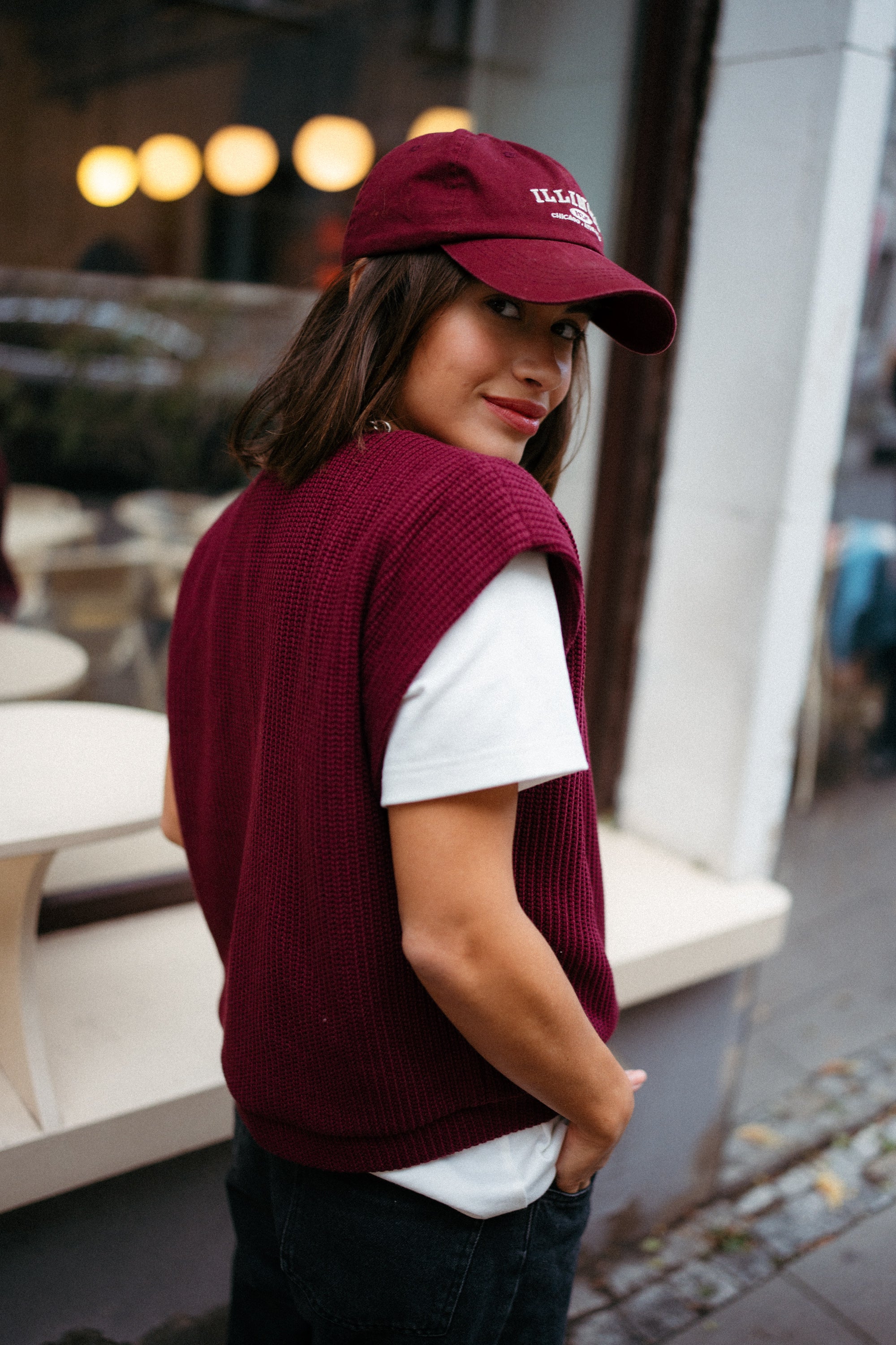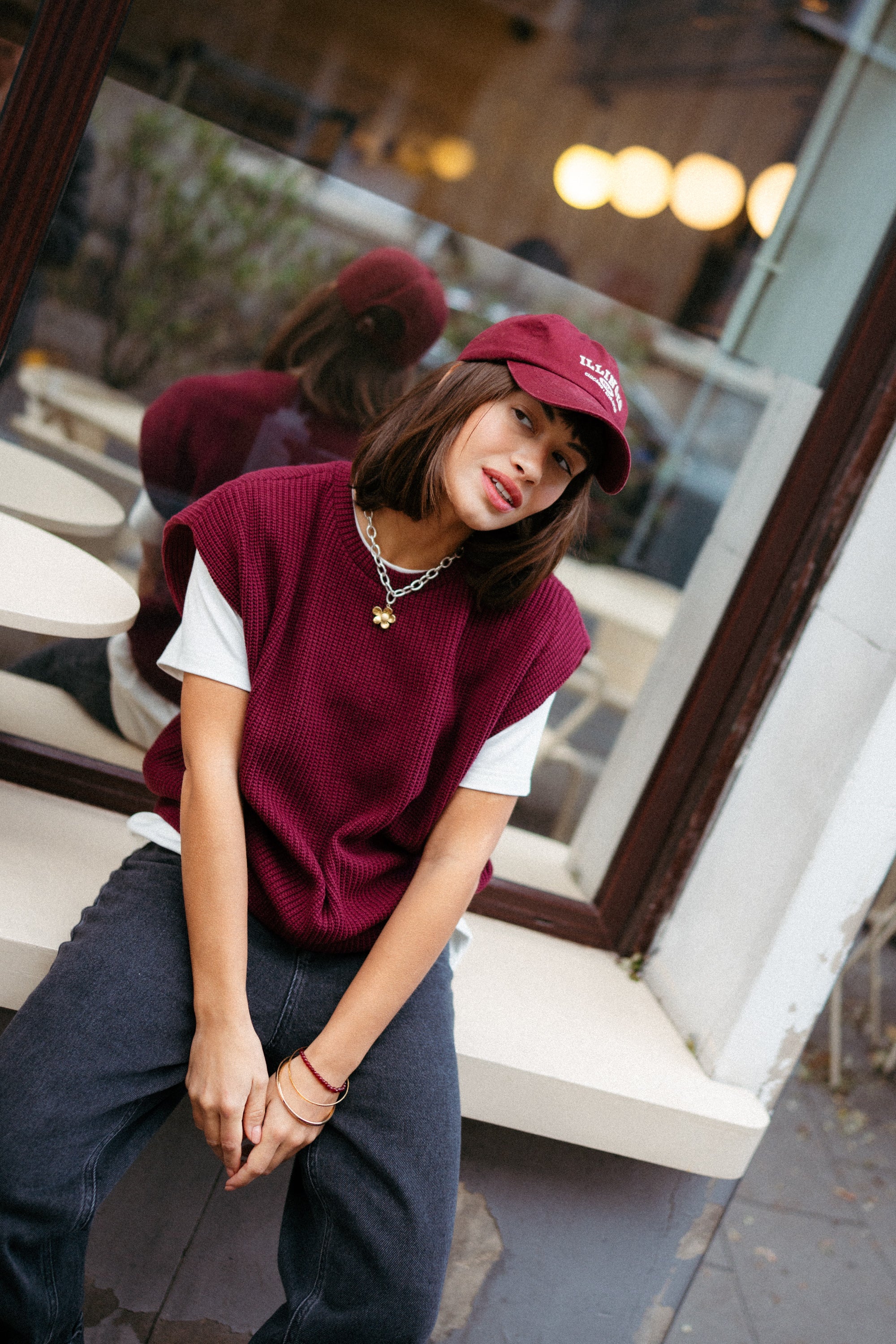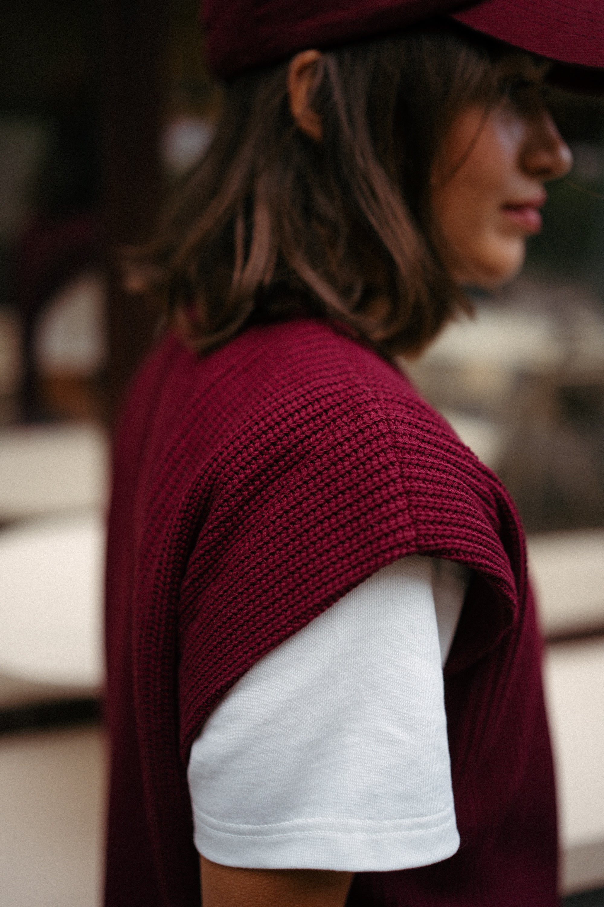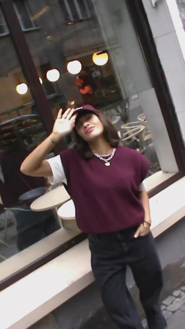 Dzianinowa kamizelka o krótszym, pudełkowym kroju, która świetnie układa się na sylwetce i dodaje stylizacjom nowoczesnego charakteru.