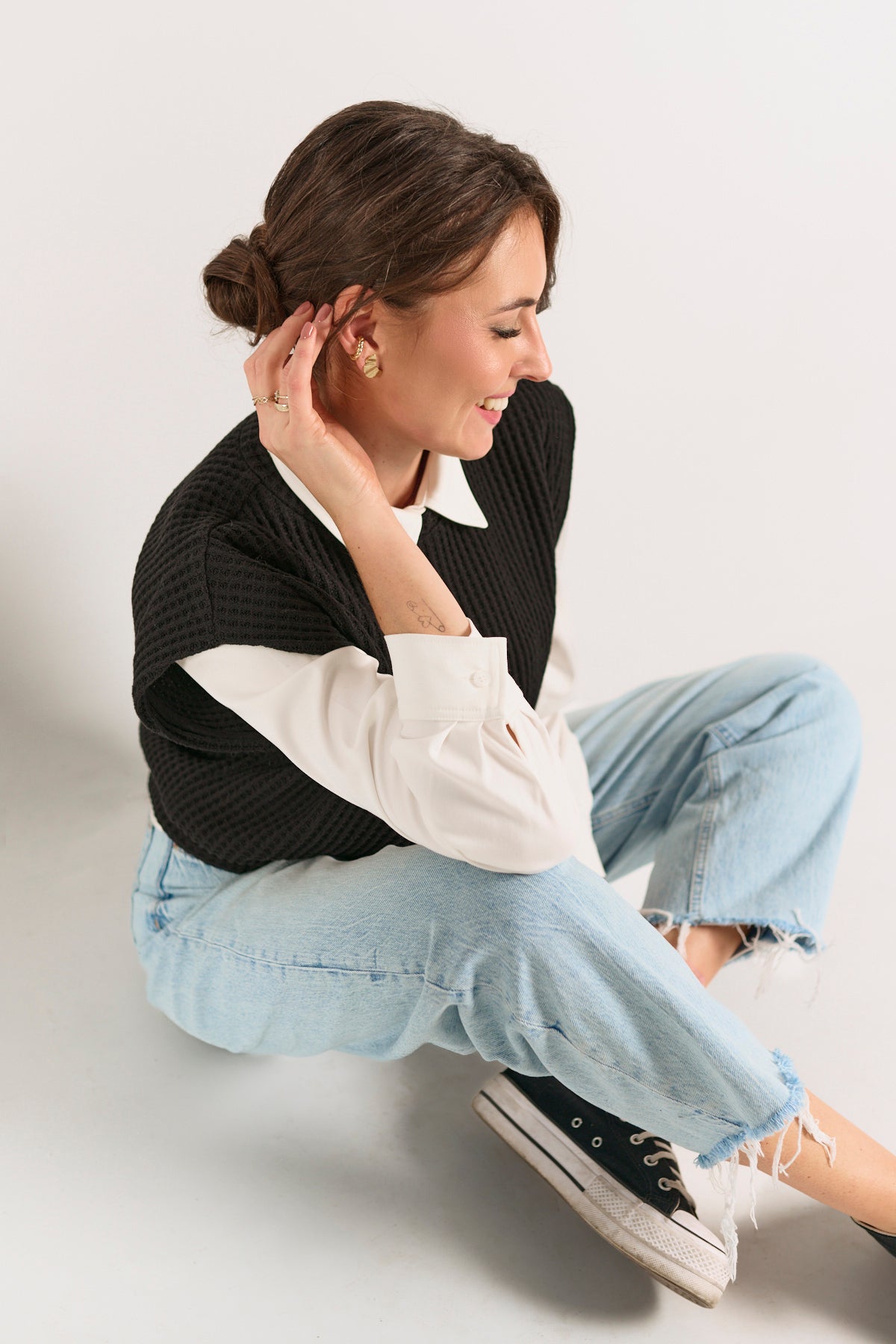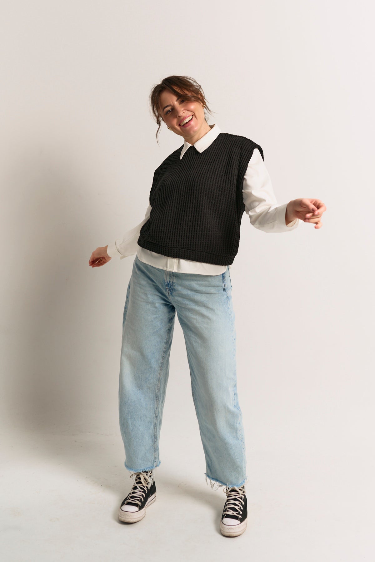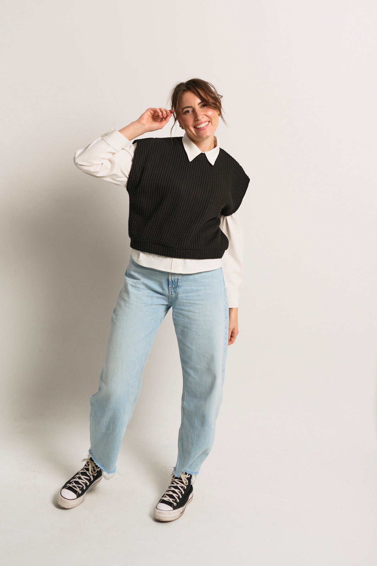 Wykończona delikatnym ściągaczem na dole, zachowuje prostą formę i dobrze współgra z warstwowymi zestawieniami — od koszulek po koszule.