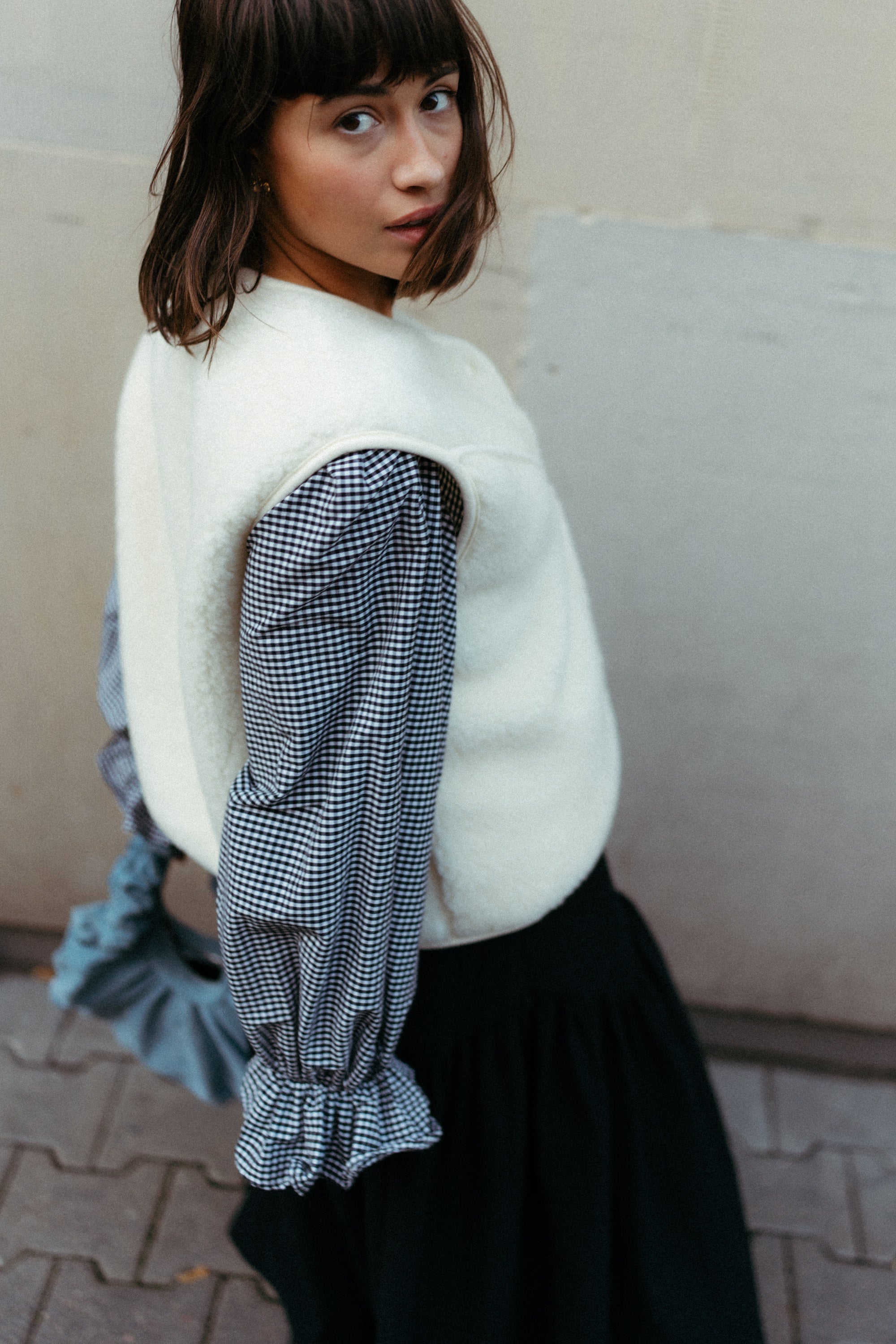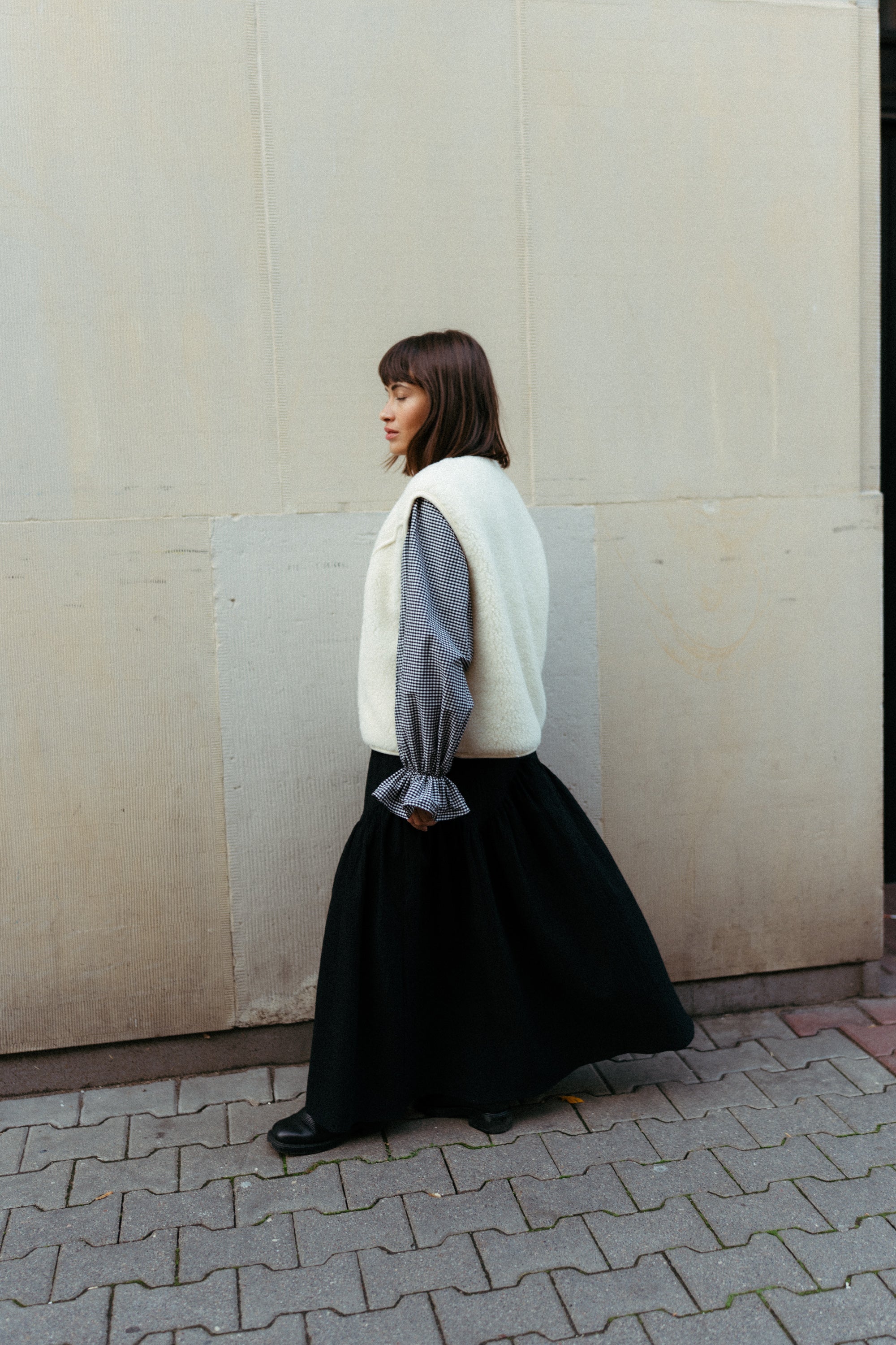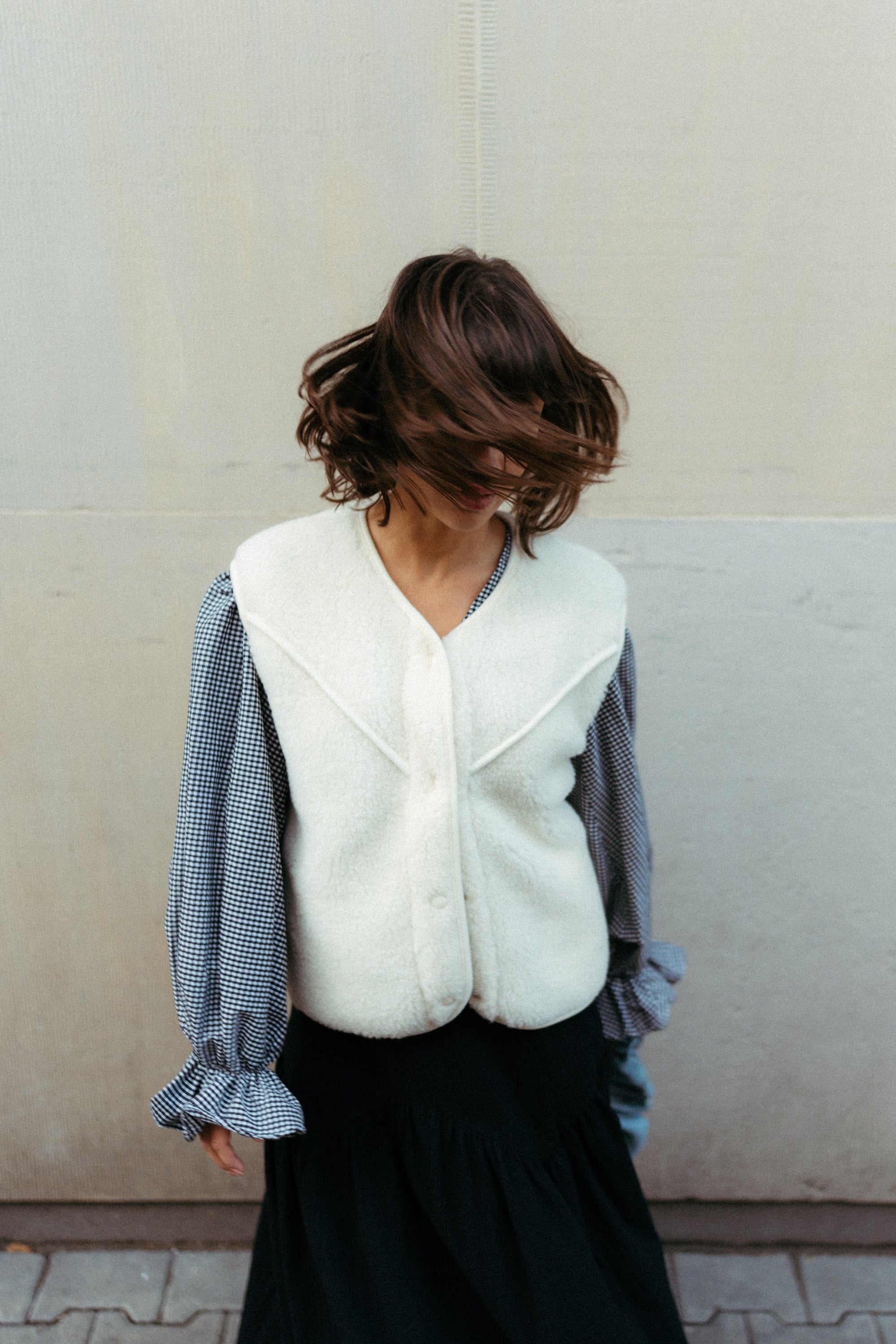 Kamizelka, która robi różnicę — luźny, pudełkowy krój daje swobodę ruchów i podkreśla nowoczesny styl.