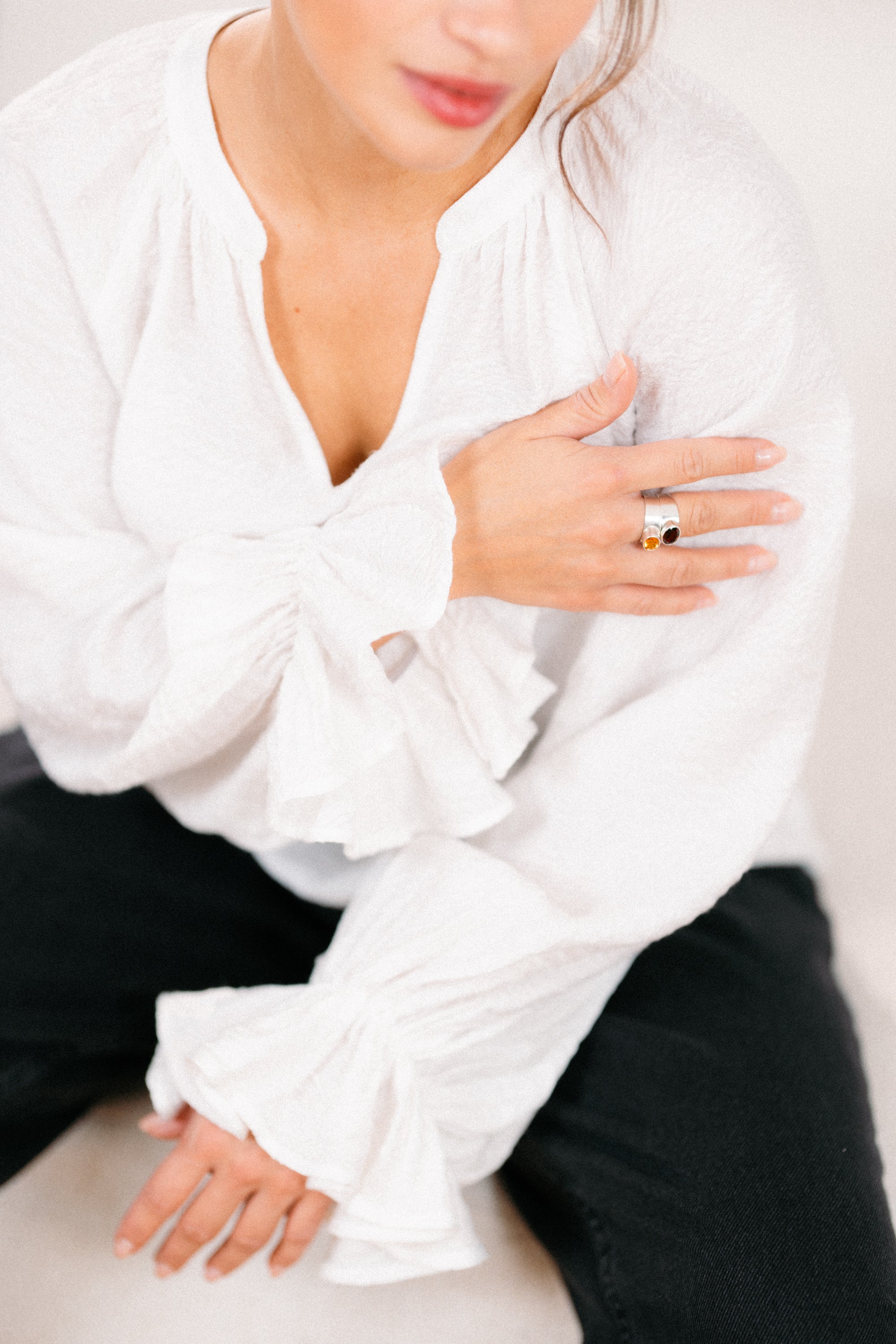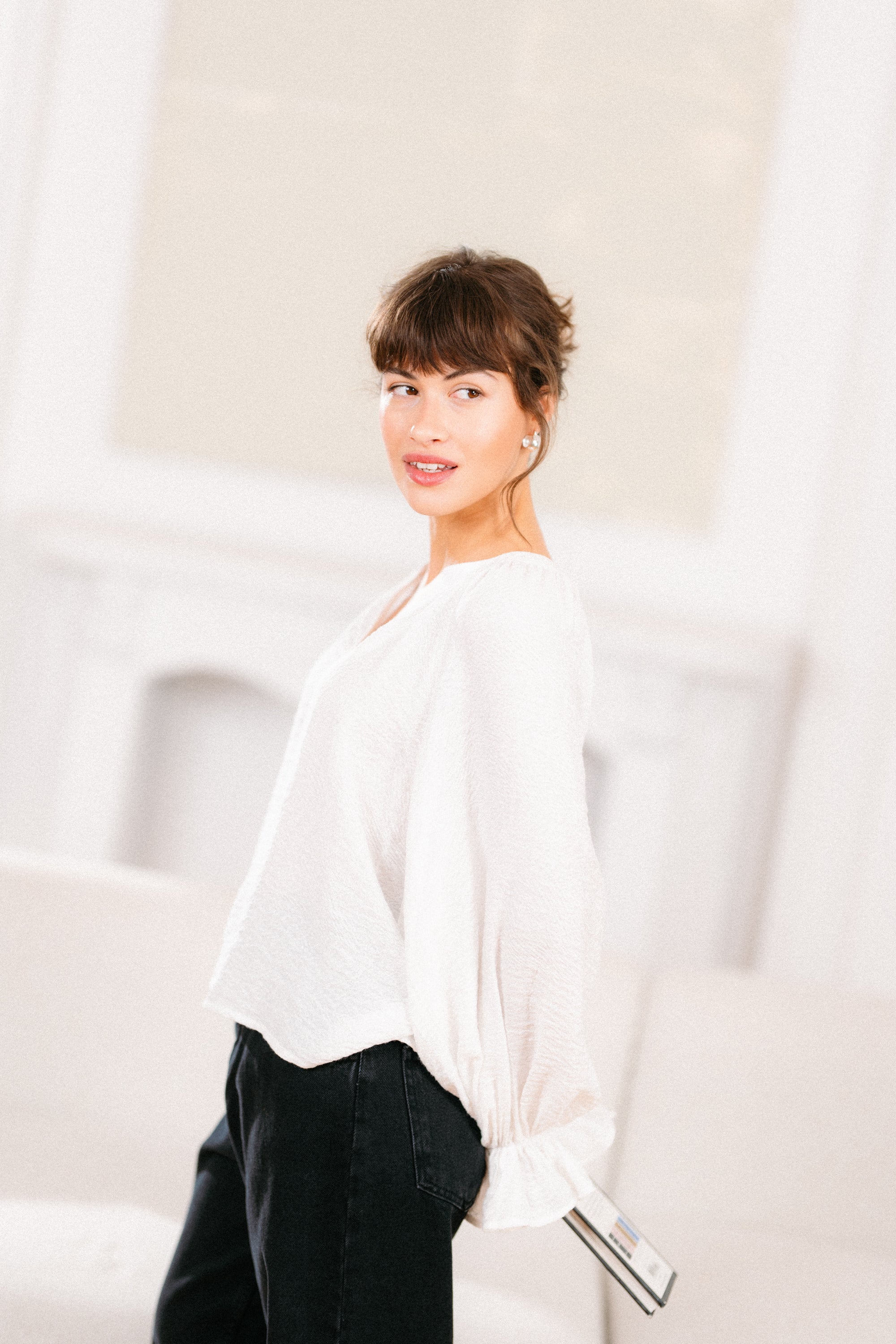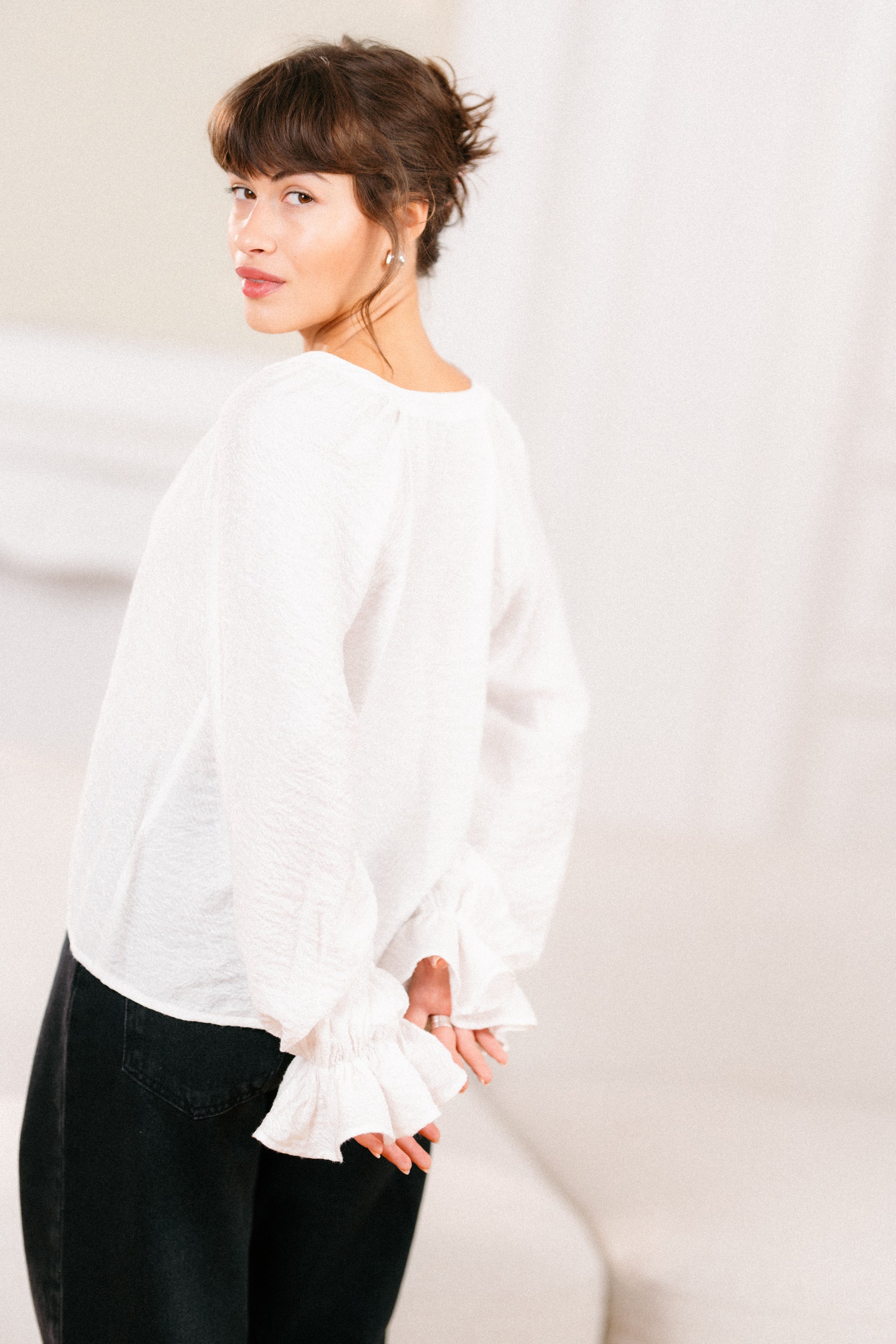 Koszula o prostym, klasycznym kroju, łącząca ponadczasową elegancję z subtelną kobiecością. Dekolt w kształcie litery V podkreśla szyję, a delikatna stójka dodaje całości lekkości i wyrafinowania. Reglanowe rękawy zakończone gumką tworzą efekt dzwonka, nadając stylizacji miękkości i lekko romantycznego charakteru. Uszyta z efektownej, lekko transparentnej wiskozy, która pięknie układa się na sylwetce i zapewnia komfort noszenia. Idealna zarówno do pracy, jak i na specjalne okazje.