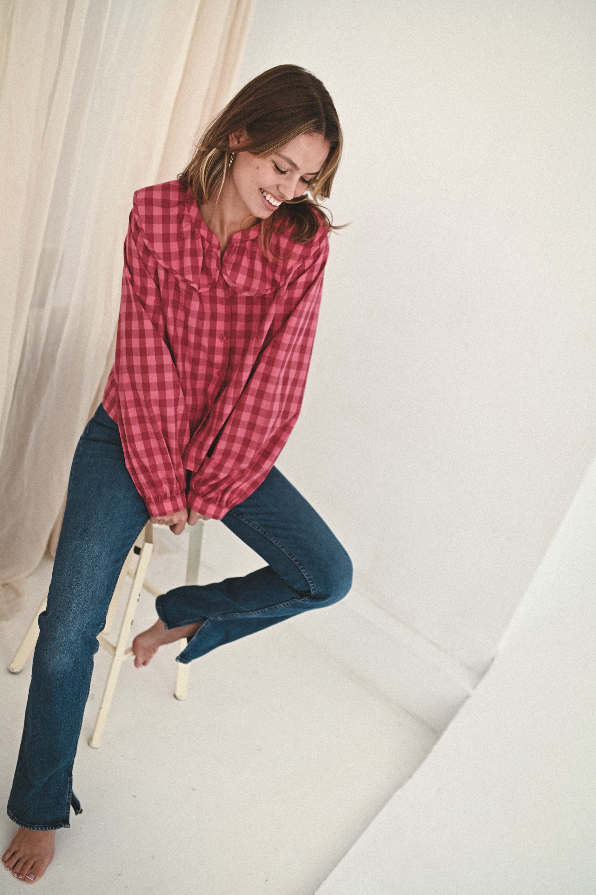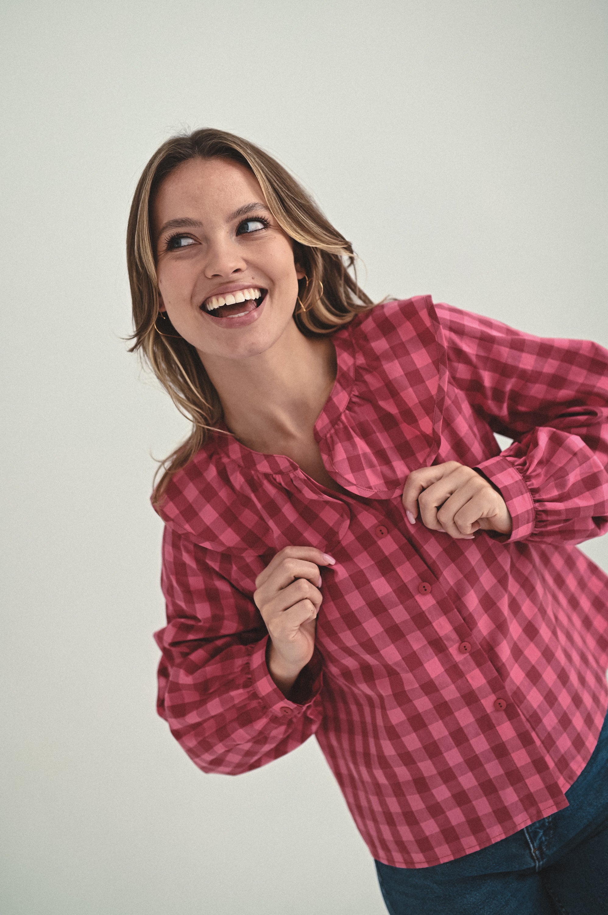 Stylowa i wygodna – ta koszula w kratę to połączenie klasyki z dziewczęcym akcentem. Luźny, prosty krój zapewnia swobodę ruchów i komfort noszenia, a zapięcie na guziki dodaje jej uniwersalnego charakteru.