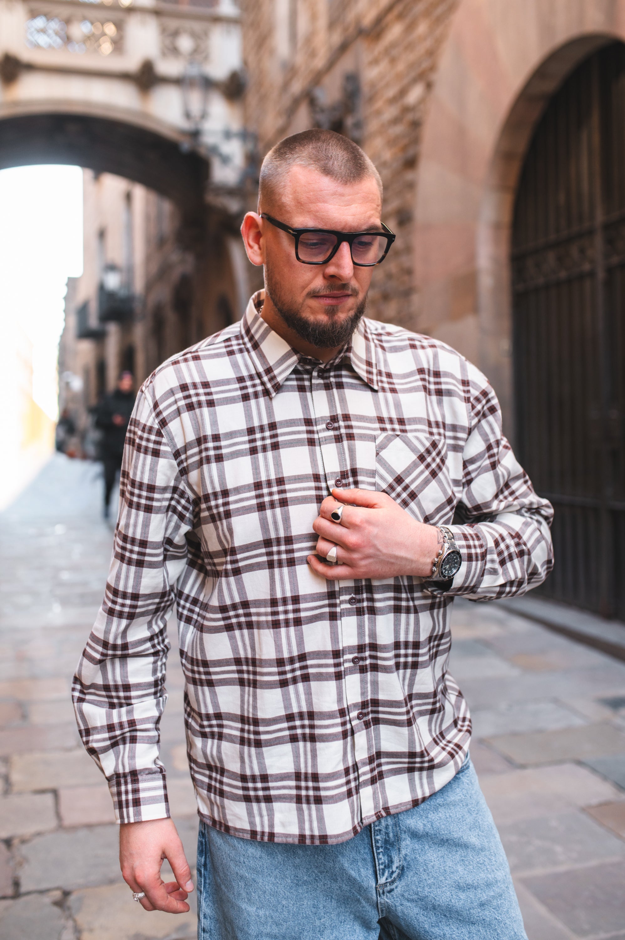 Męska koszula o prostym, ponadczasowym kroju, która łączy klasykę z codziennym komfortem. Długie rękawy z mankietami zapinanymi na guziki oraz klasyczny kołnierzyk nadają jej uniwersalny charakter, a zapięcie na całej długości sprawia, że jest wygodna i funkcjonalna. Miękka bawełna o flanelowym wykończeniu jest przyjemna w dotyku i dobrze sprawdza się w chłodniejsze dni. Wzór w kratę oraz kieszeń po lewej stronie podkreślają swobodny, męski styl koszuli, idealny do codziennych zestawów.