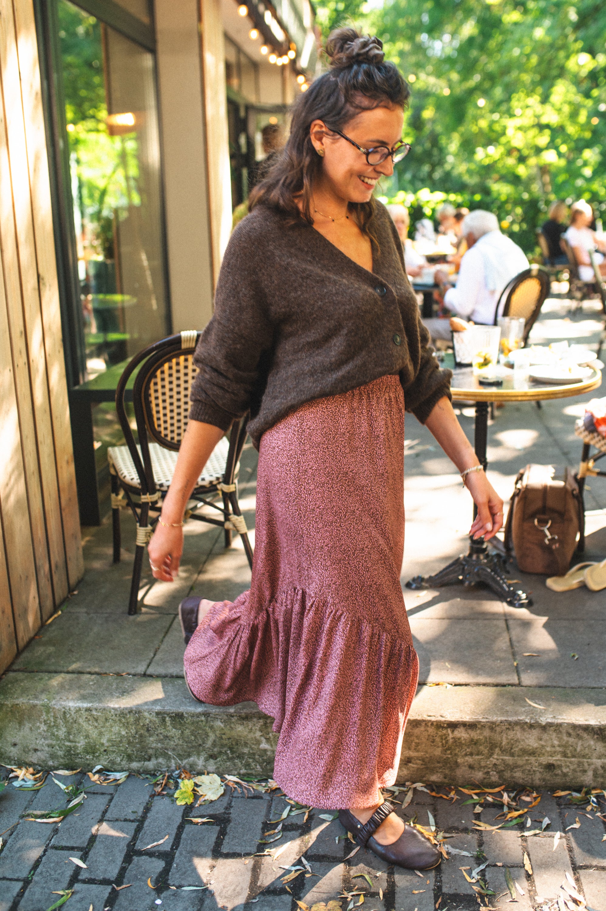 Zaprojektowana specjalnie na potrzeby mam i kobiet aktywnych, tak by móc biegać, nachylić się, usiąść bez skrępowania. Spódnica daje poczucie komfortu i jest przy tym ultra kobieca. Doskonale sprawdzi się w codziennych stylizacjach.