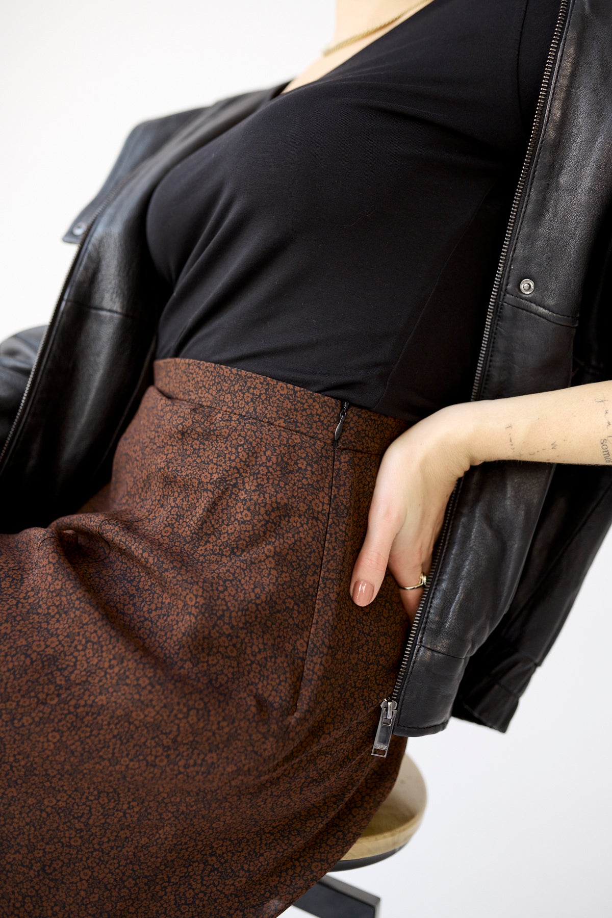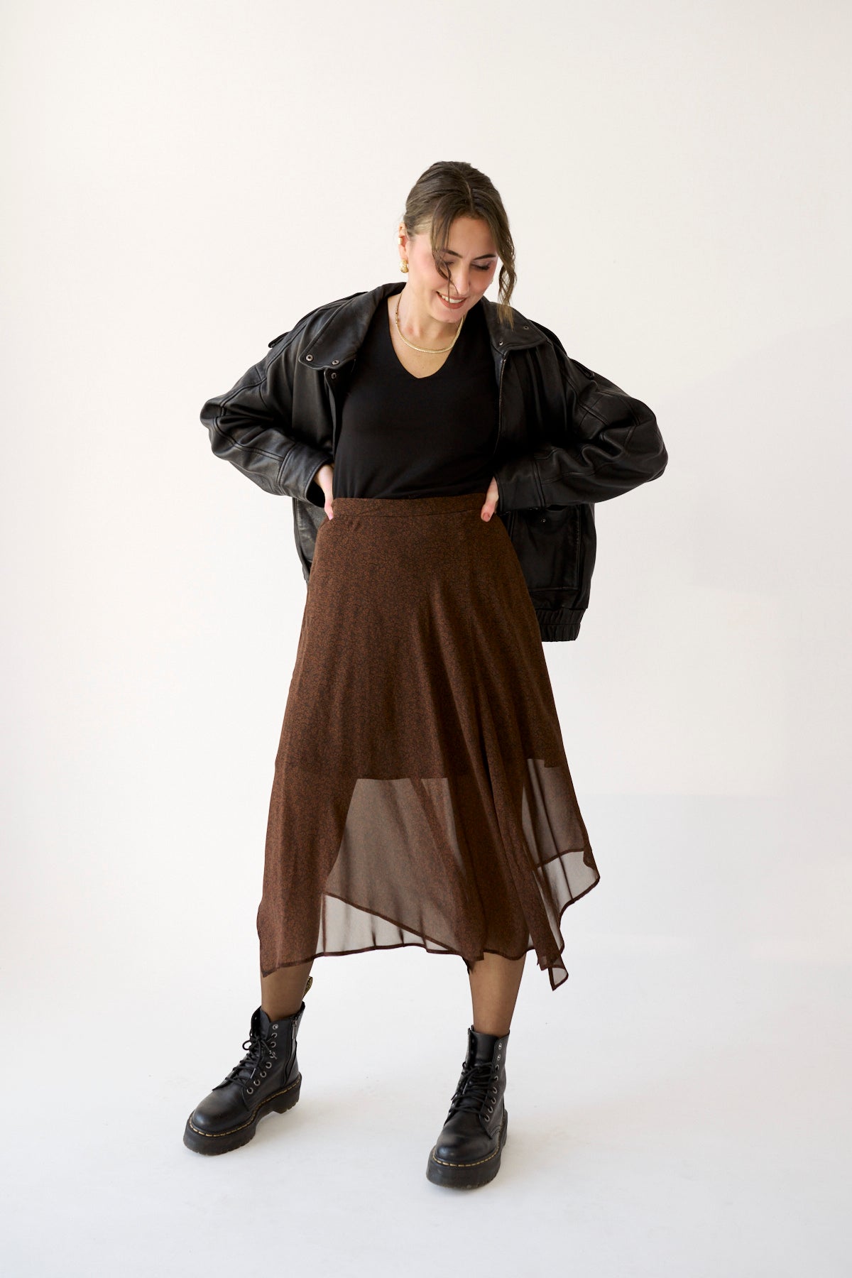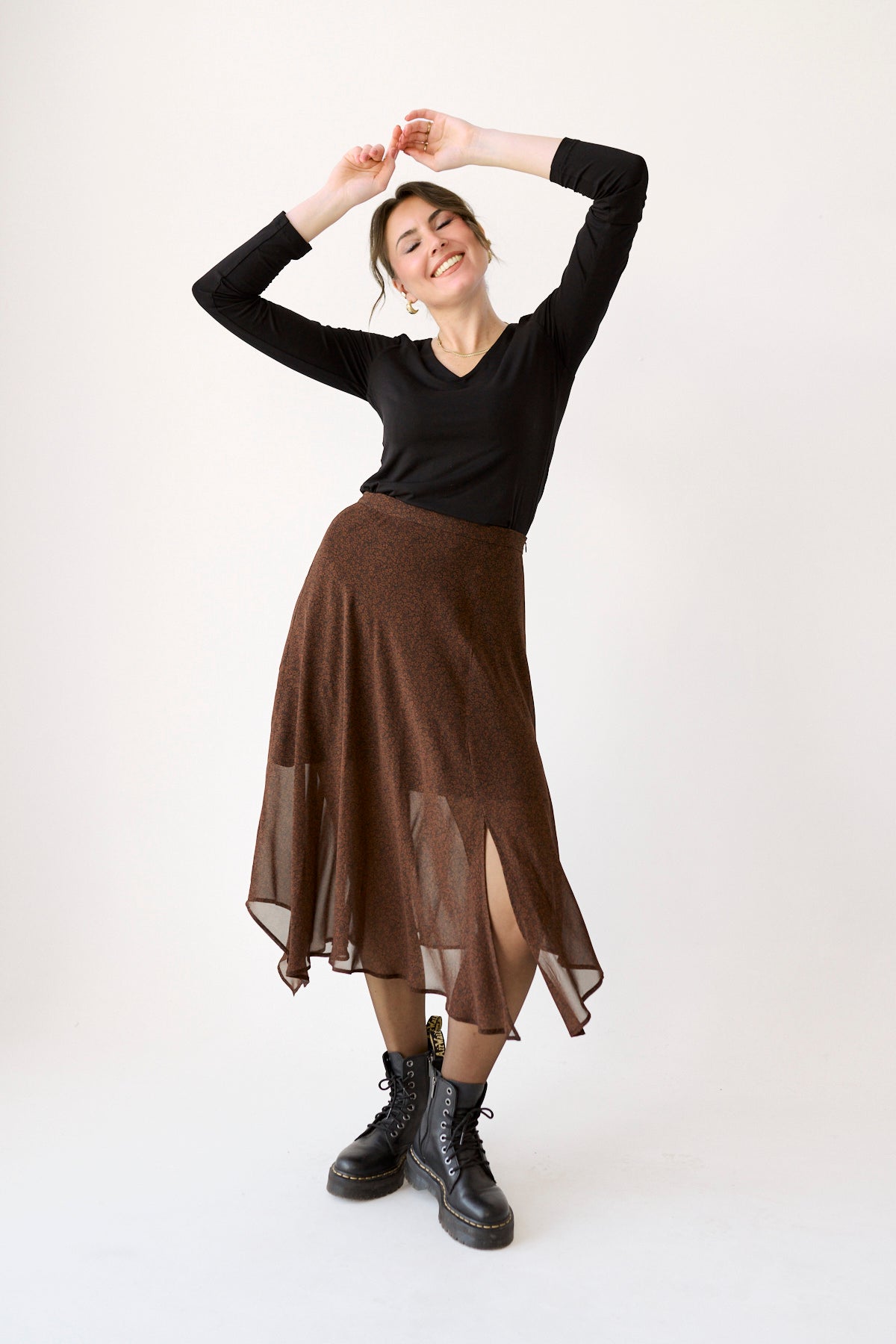 Spódnica midi wykonana z lekkiej, przyjemnej w dotyku wiskozy, która zapewnia komfort noszenia i swobodę ruchów. Asymetryczny krój nadaje całości nowoczesnego charakteru, a rozporek po lewej stronie subtelnie podkreśla sylwetkę. Model zapinany na dyskretny zamek, z krótką podszewką zwiększającą wygodę noszenia. Spódnica świetnie sprawdzi się zarówno w codziennych stylizacjach, jak i w bardziej dopracowanych zestawach.