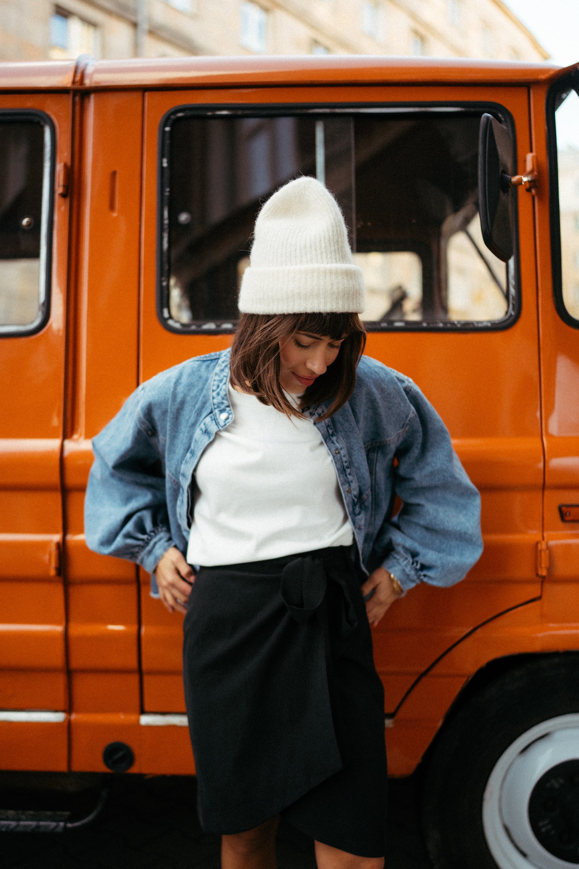 Kopertowa spódniczka, która dzięki dużemu zakładowi materiału, nie rozchodzi się!