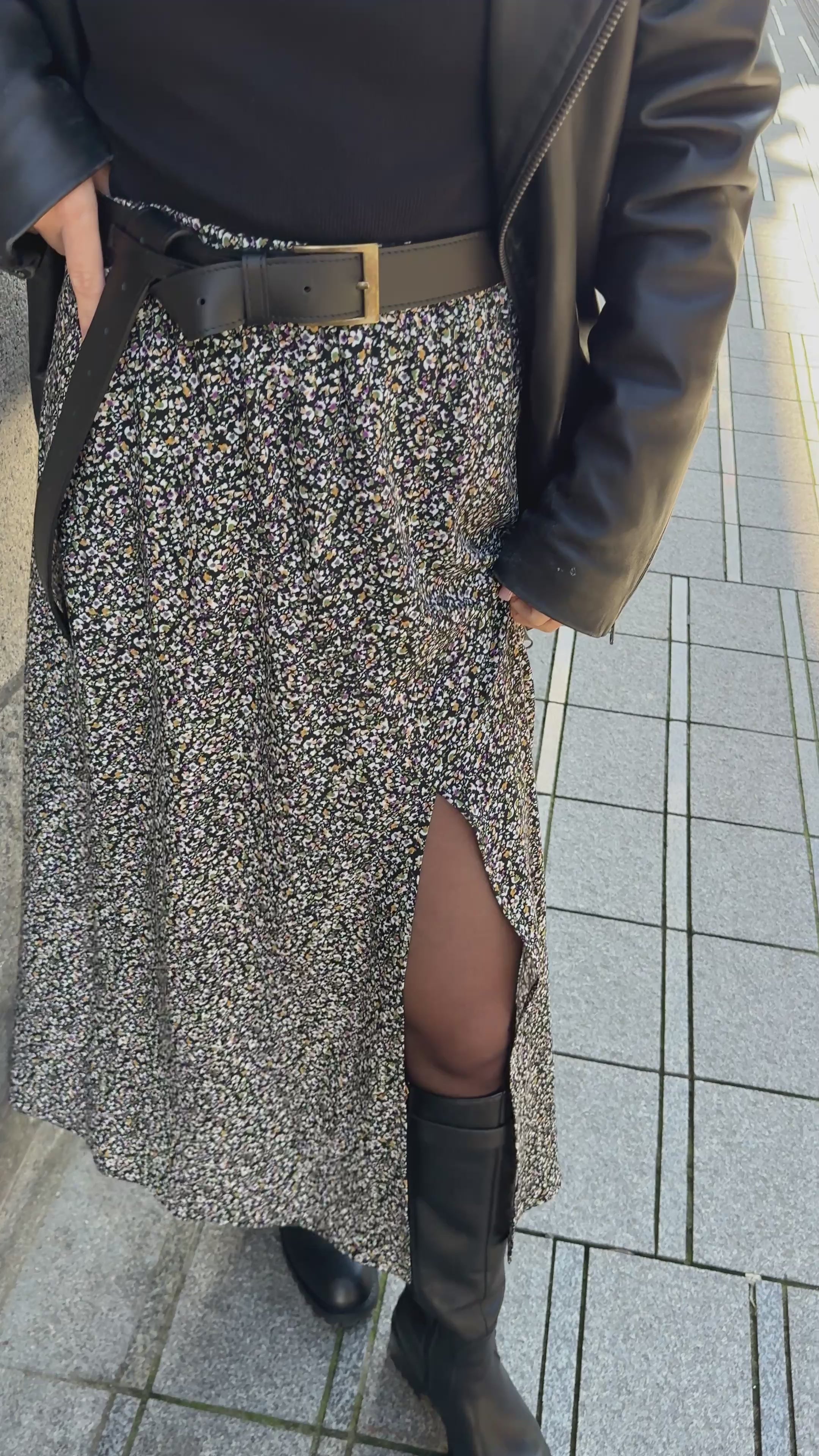 Ciekawym elementem jest niespotykany, skośny szew, który prowadzi wzrok i kończy się zmysłowym rozcięciem na nodze – subtelny, ale intrygujący akcent. W talii wygodna, 4-centymetrowa guma zapewnia idealne dopasowanie i komfort noszenia przez cały dzień.