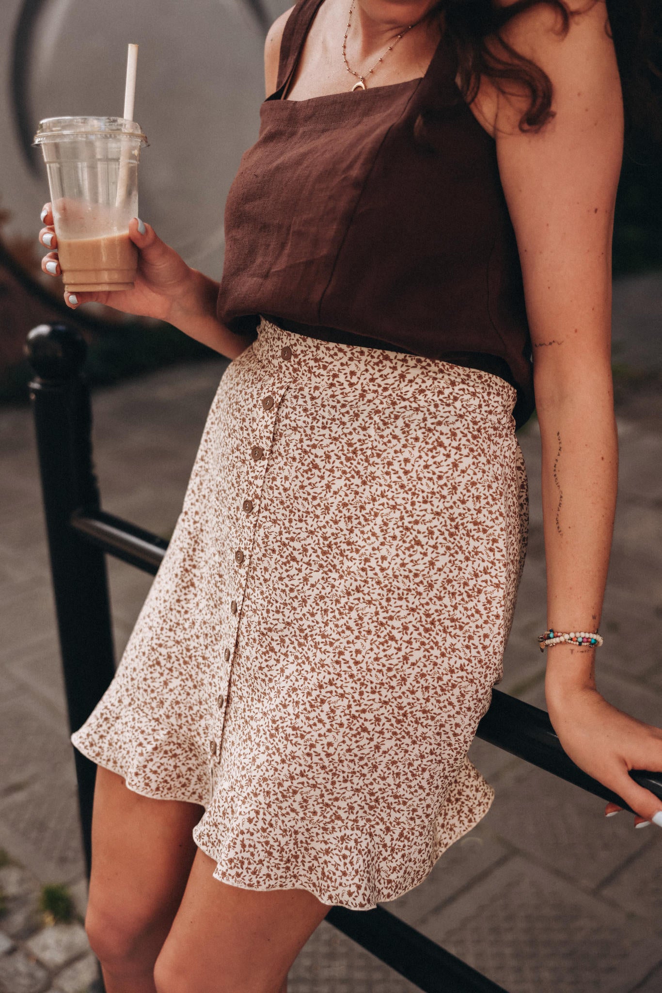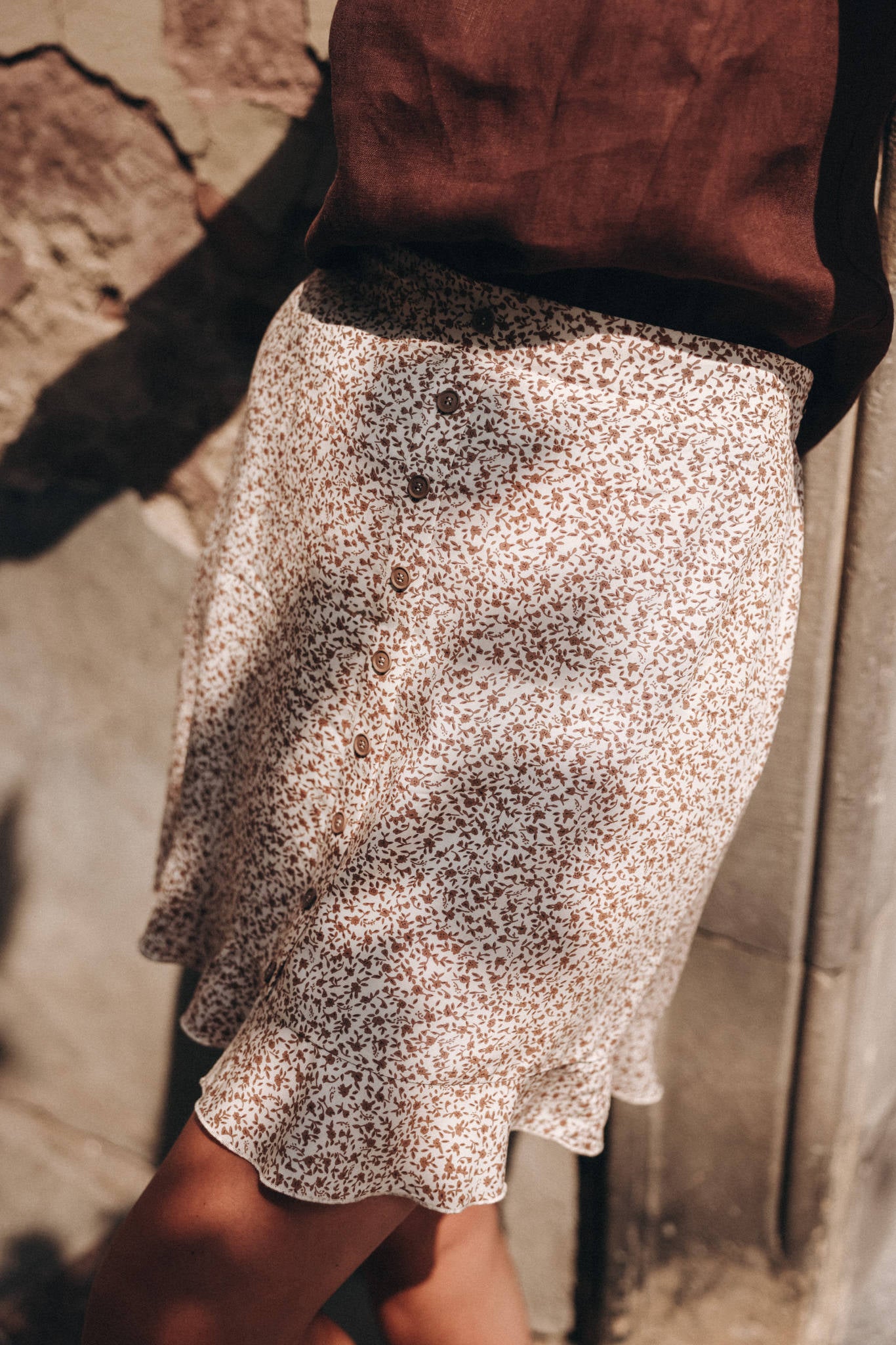 Krótka, zwiewna spódniczka.