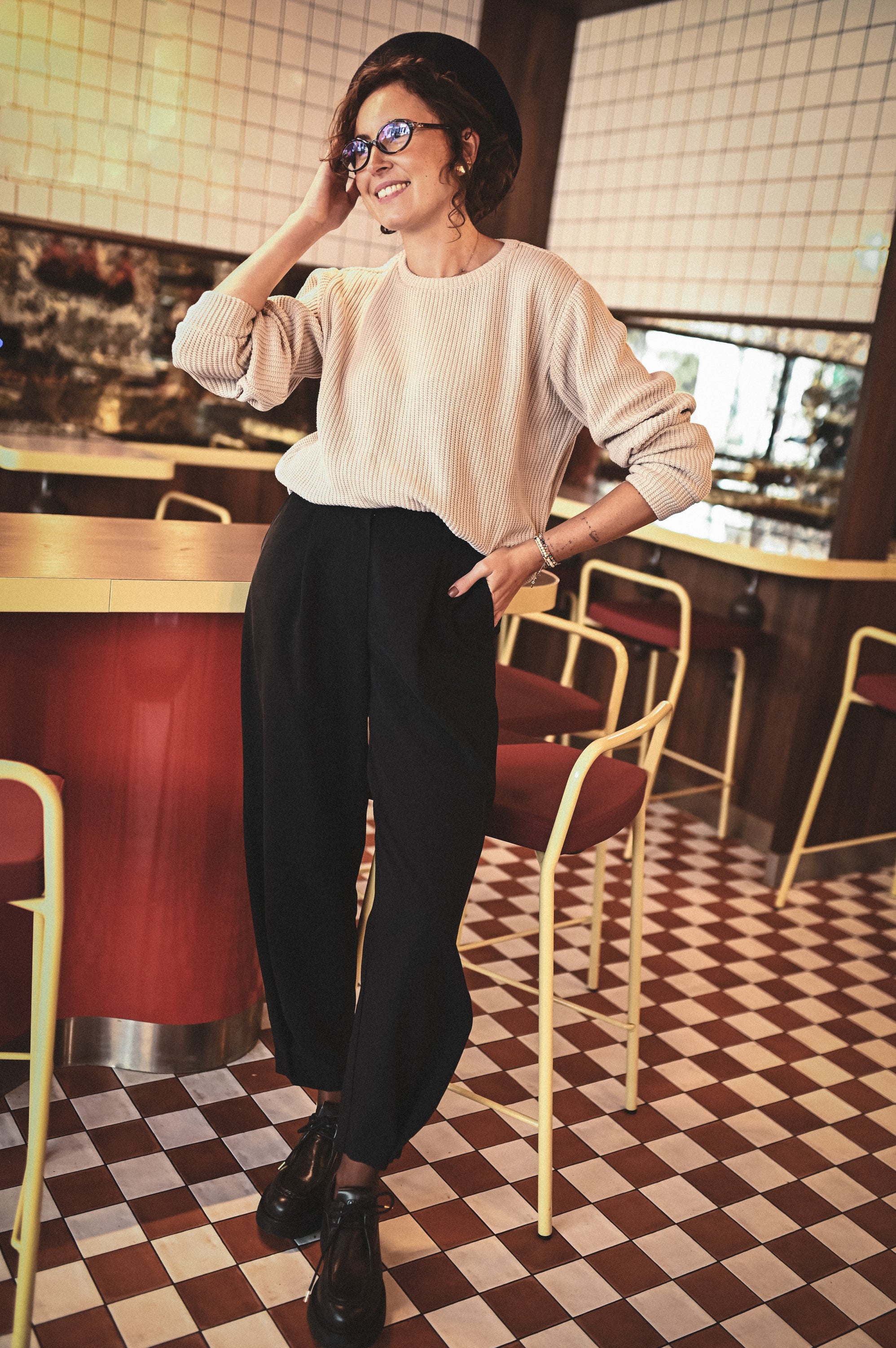 Funkcjonalne kieszenie w szwach bocznych oraz z tyłu sprawiają, że spodnie są nie tylko stylowe, ale i praktyczne. Świetnie komponują się zarówno z dopasowaną górą, jak i oversize’owymi koszulami czy swetrami.