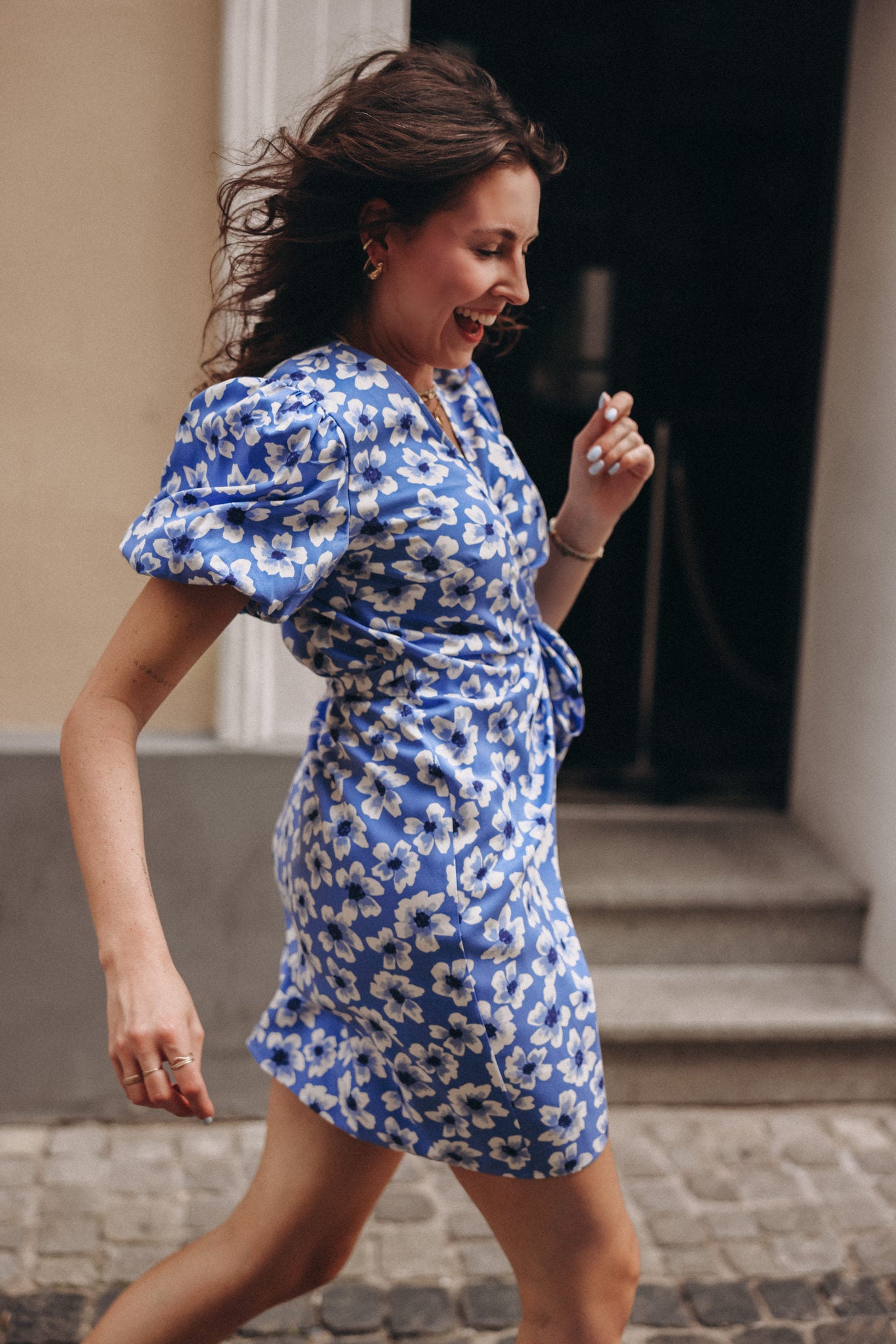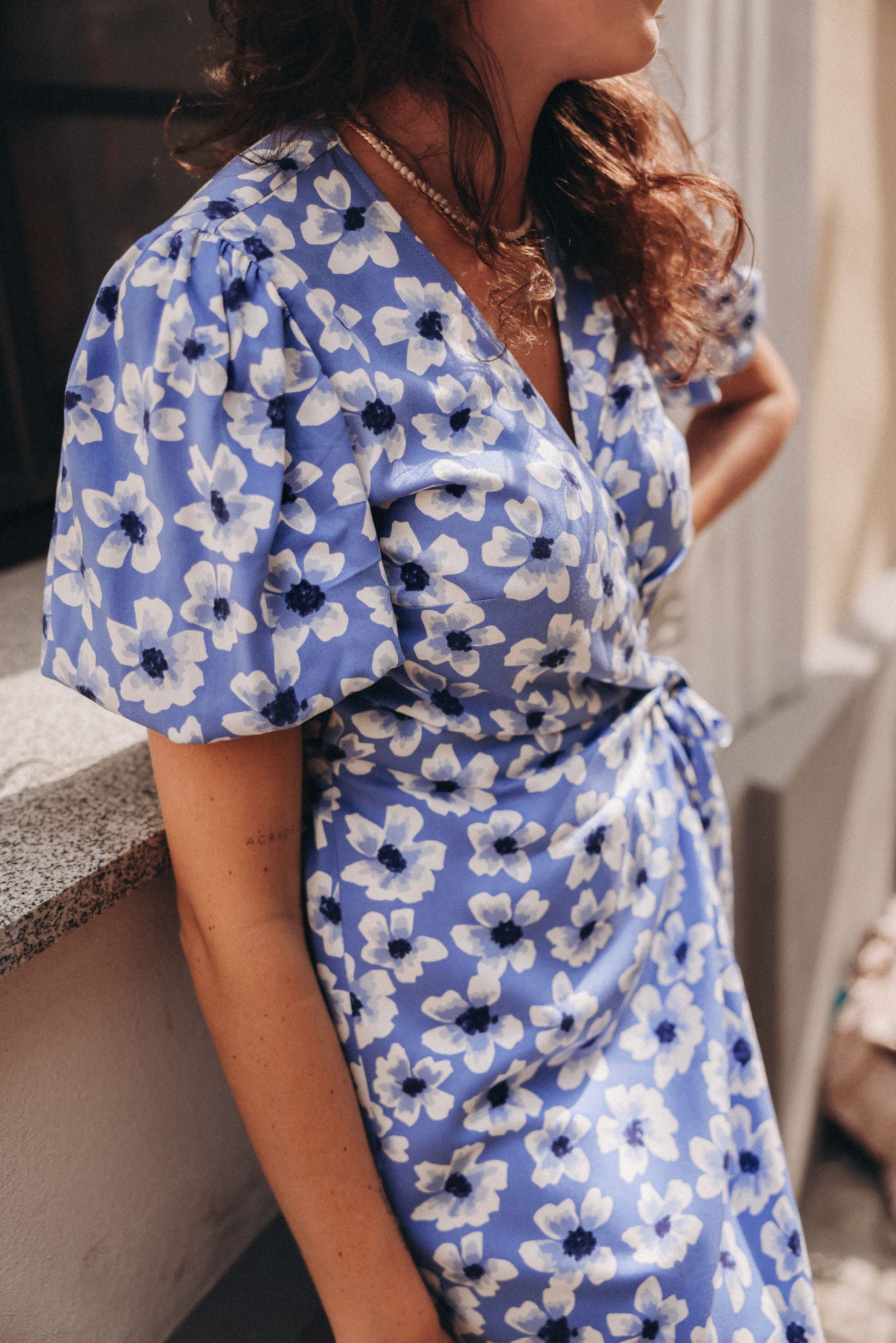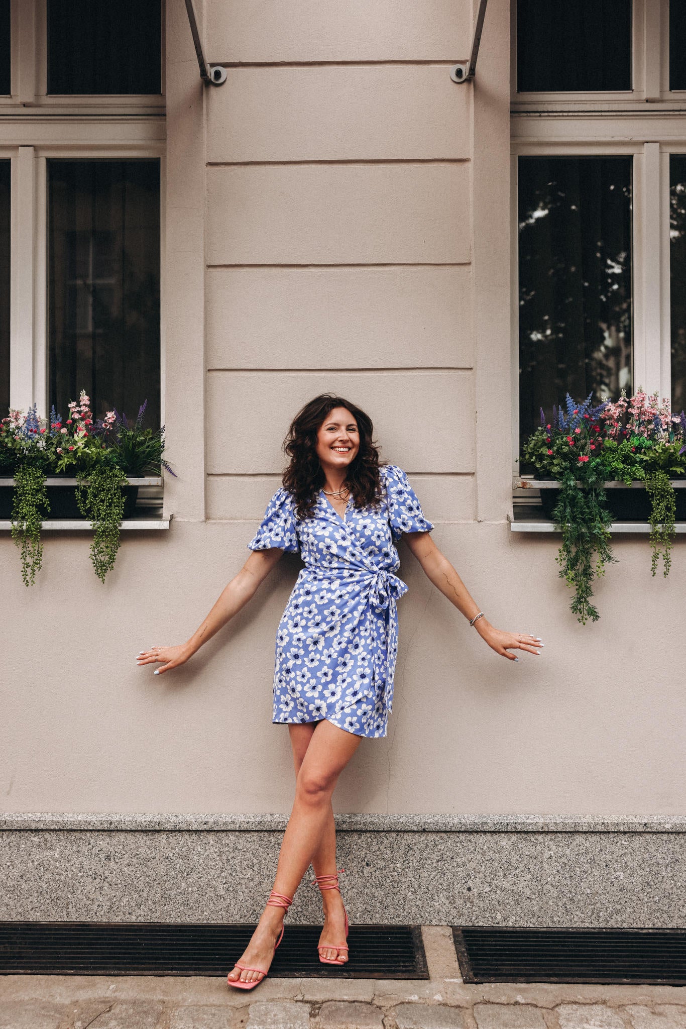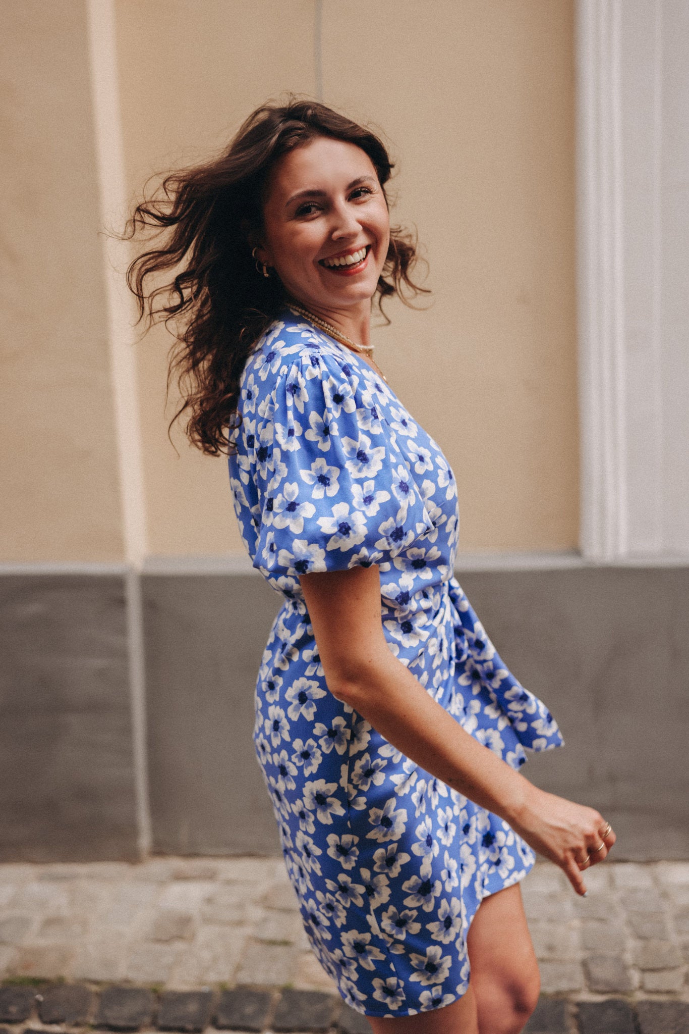 Stylowa i kobieca sukienka o klasycznym, prostym kroju to połączenie ponadczasowej formy i wygody. Kopertowy dekolt pięknie podkreśla linię szyi, a możliwość wyboru dwóch sposobów wiązania – na gładko lub z delikatnym marszczeniem – pozwala dopasować fason do sylwetki i okazji.