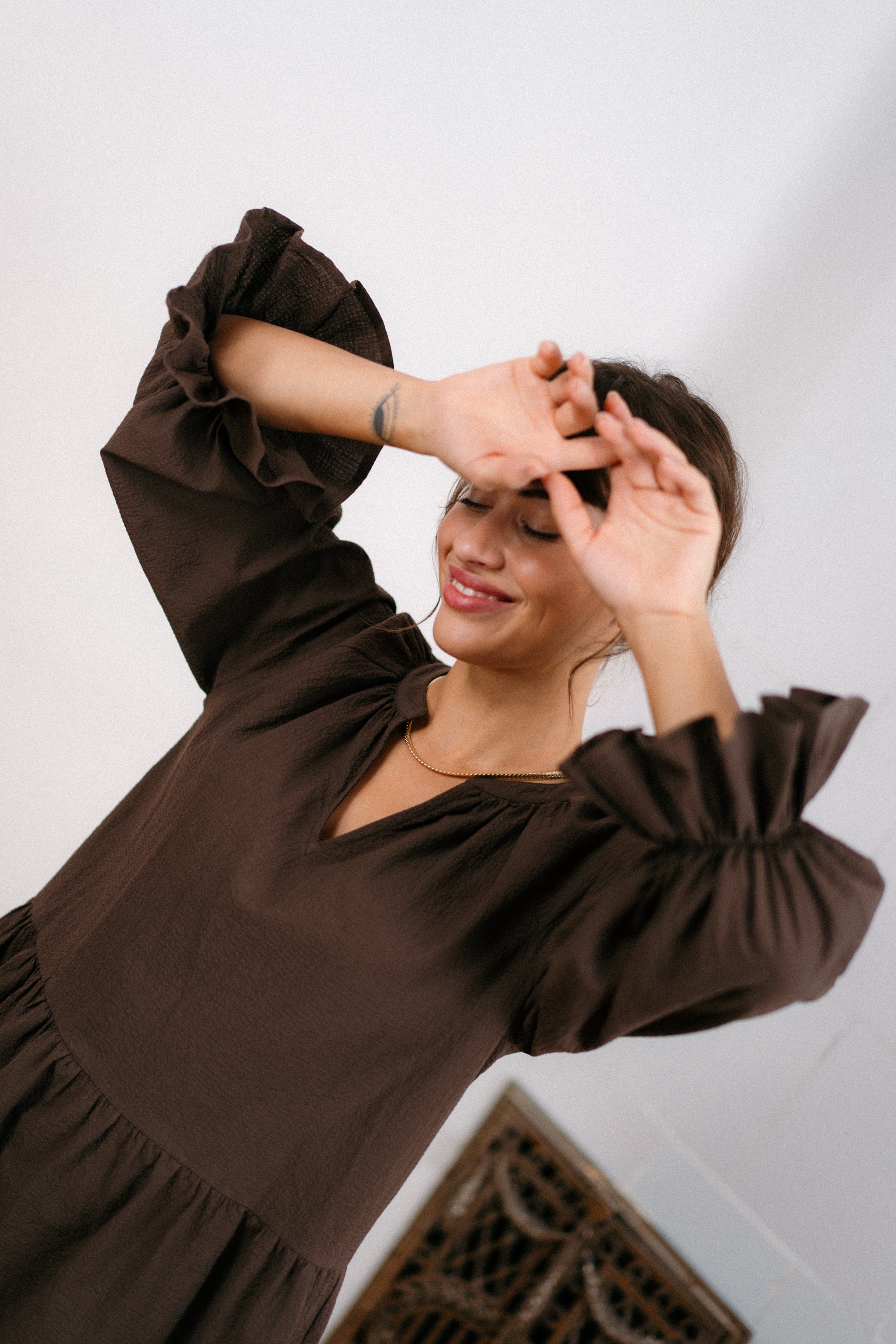 Wejdź w jesień z lekkością — nasza nowa sukienka o luźnym kroju oversize to połączenie komfortu, stylu i naturalnej elegancji. Uszyta z bawełny o kreszowanej strukturze, idealnie sprawdzi się w chłodniejsze dni, zapewniając przewiewność i przyjemne otulenie.