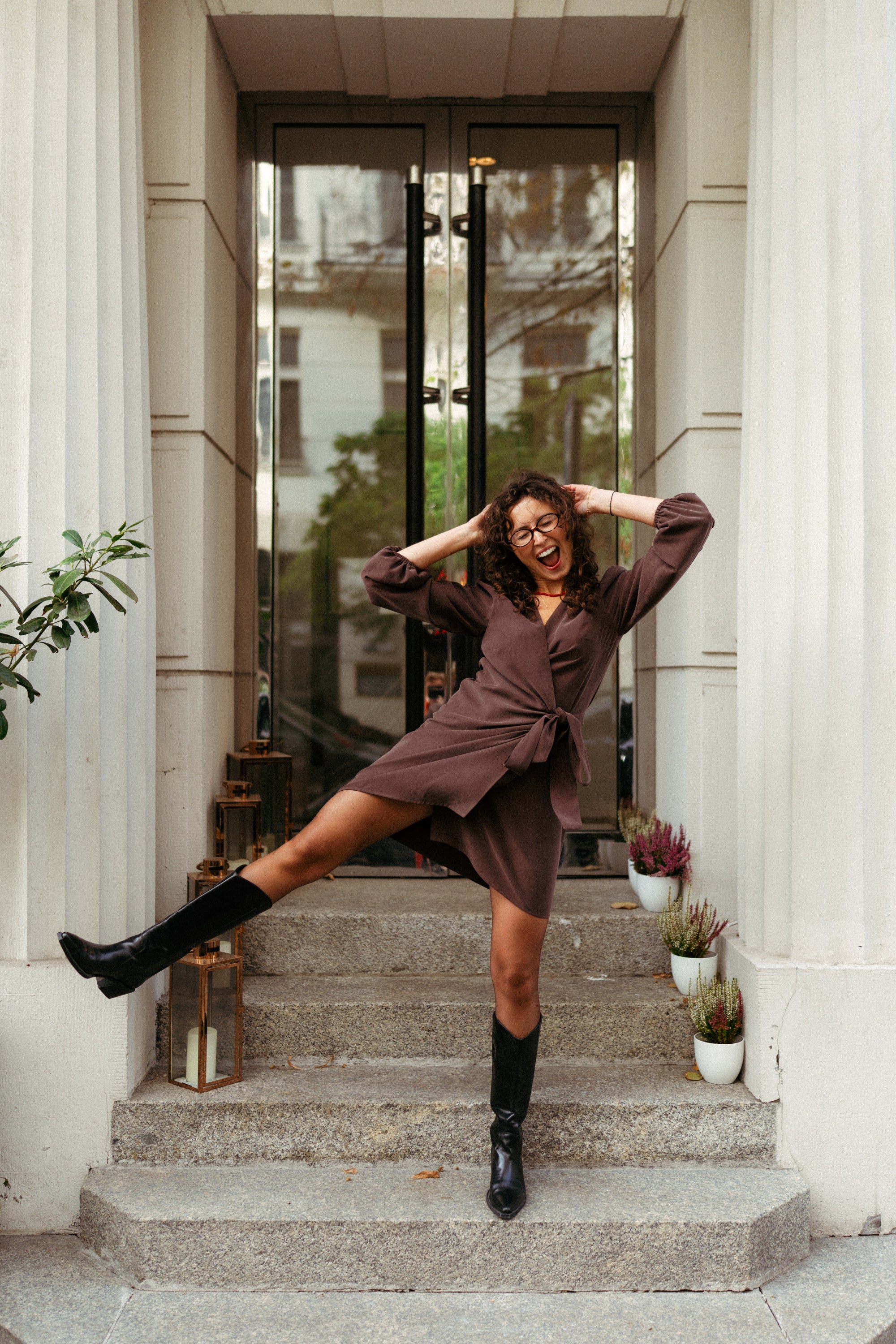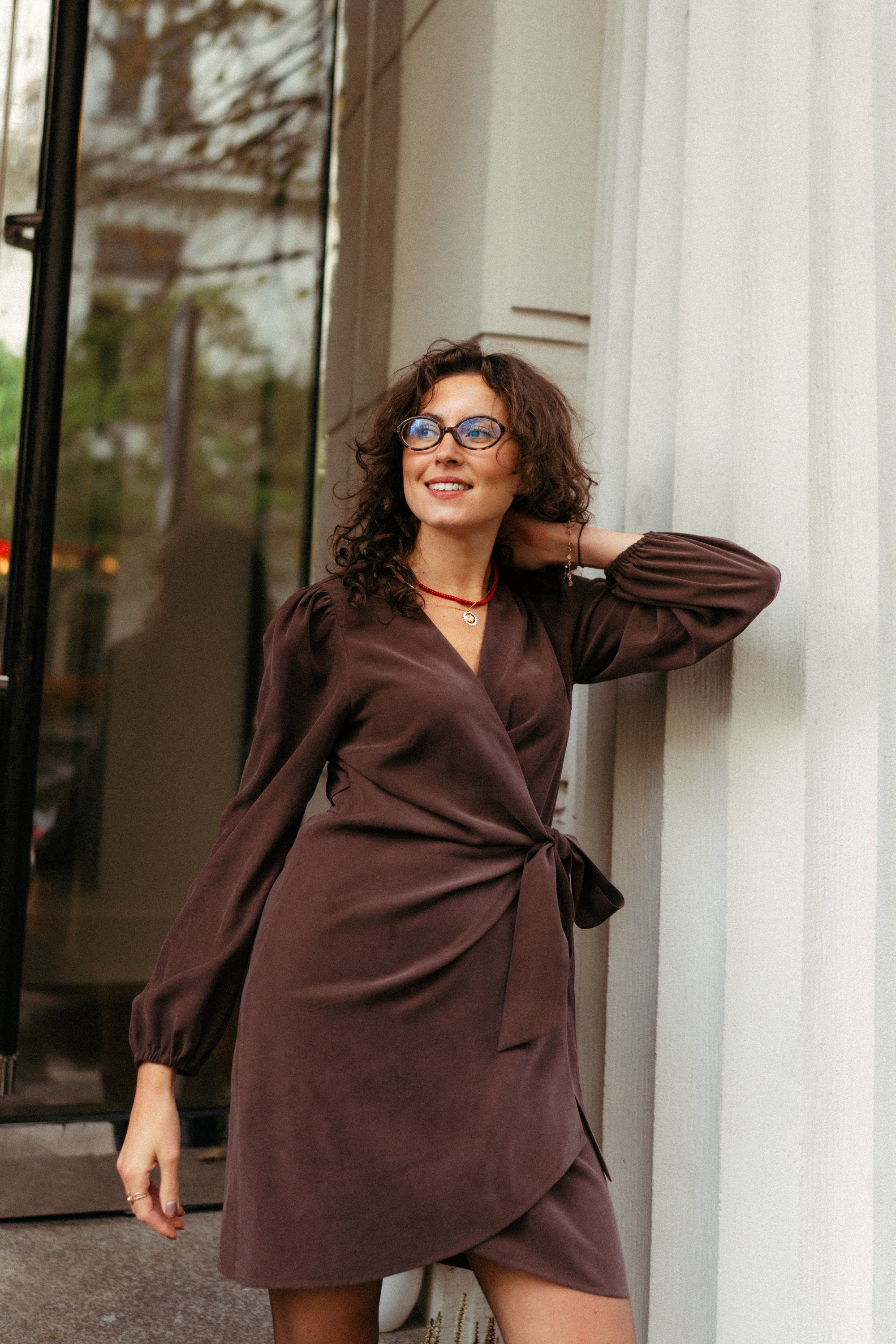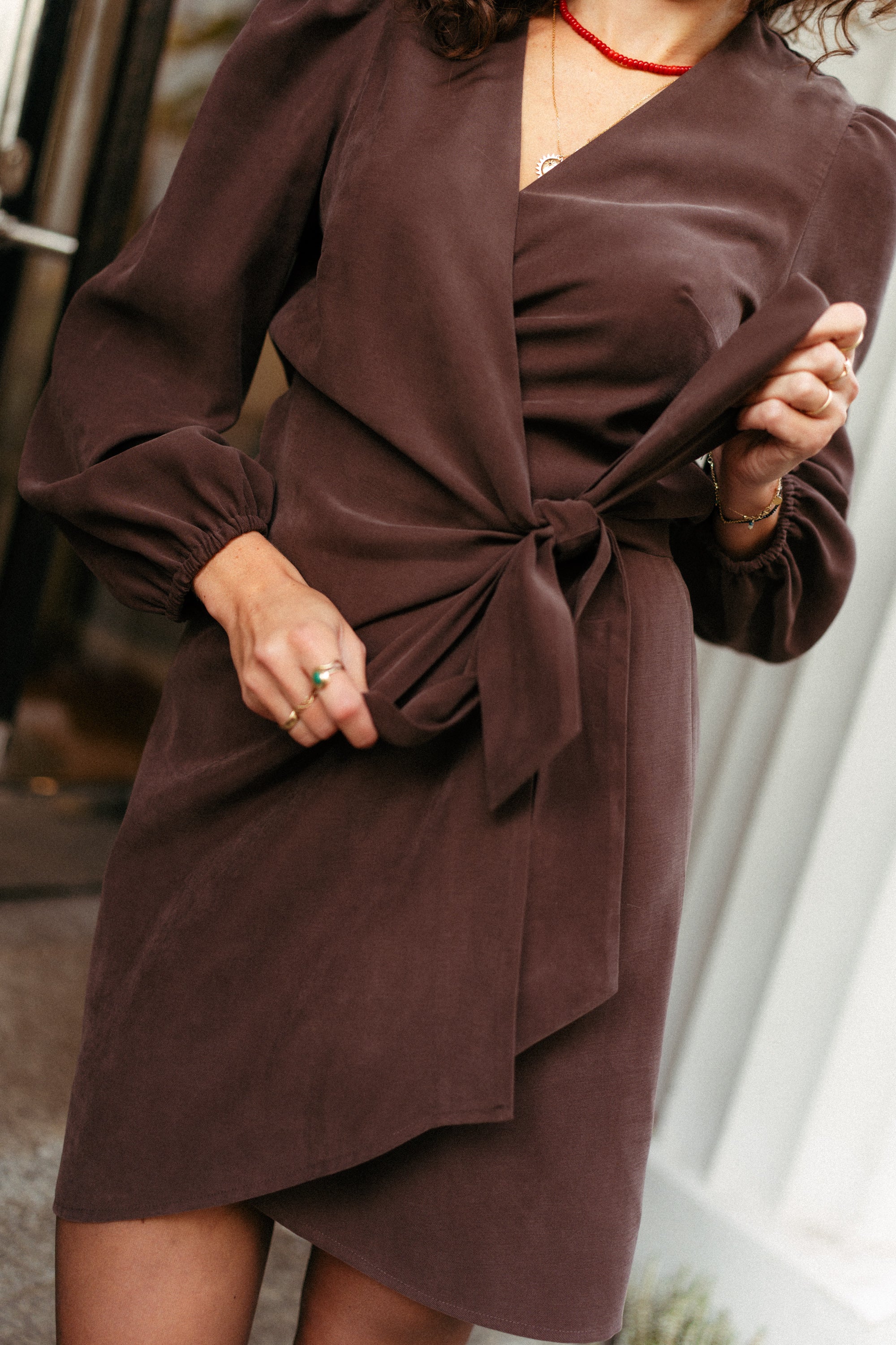 Elegancja w najczystszej formie – ta kopertowa sukienka zachwyca prostotą i ponadczasowym stylem. Klasyczny, prosty krój pięknie podkreśla sylwetkę, a regulowany, kopertowy dekolt pozwala dopasować głębokość wycięcia do własnych preferencji.