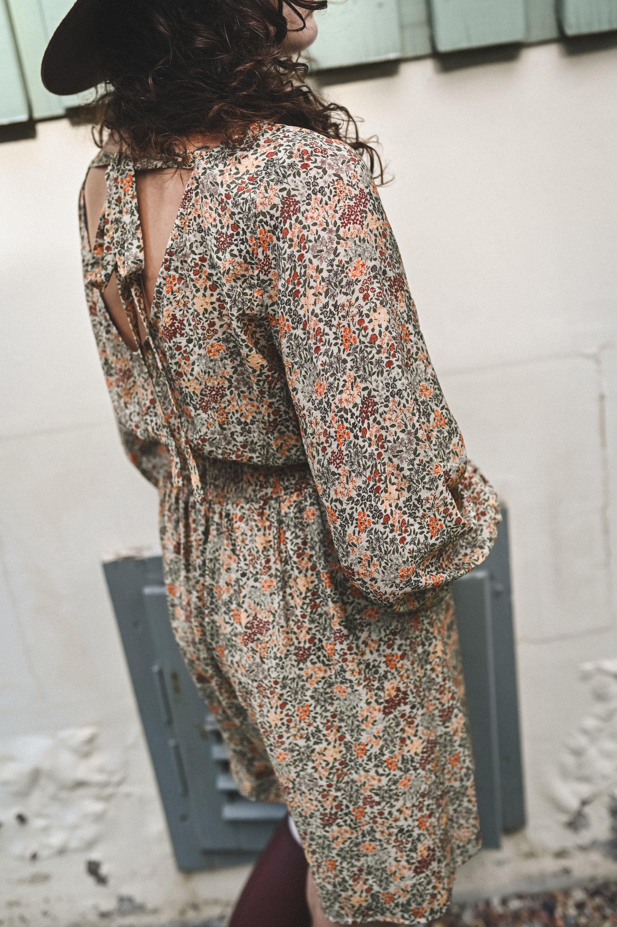 Lekka i zwiewna sukienka mini uszyta z delikatnej wiskozy, która miękko układa się na sylwetce, zapewniając komfort i kobiecy wygląd. Góra z łódkowym dekoltem oraz prostymi, luźnymi rękawami zakończonymi gumką dodaje lekkości i subtelnego uroku. Tył zachwyca głębokim dekoltem w kształcie litery V oraz uroczym wiązaniem, które pięknie eksponuje plecy. W talii szeroka, marszczona guma, która podkreśla figurę i tworzy zrównoważoną proporcję. Sukienka posiada podszewkę, co zwiększa komfort noszenia i zapewnia pełne krycie. Idealna na ciepłe dni, letnie wyjścia lub wakacyjne wieczory.