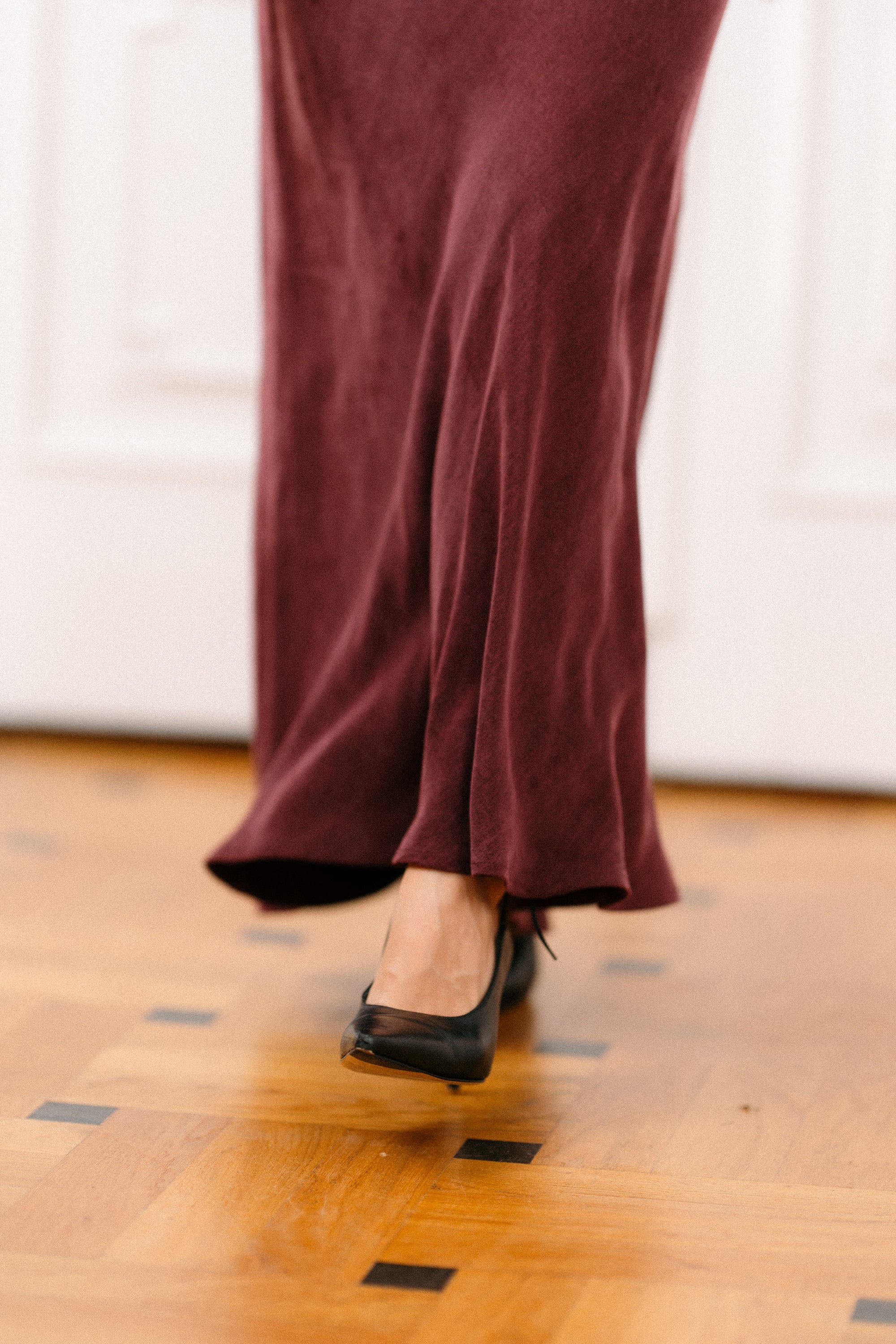 Ta sukienka zachwyca swoją lekkością i kobiecą elegancją. Krój szyty ze skosu nadaje jej naturalną miękkość oraz pięknie układającą się, opływową formę, która subtelnie podkreśla sylwetkę. Długość maxi dodaje jej szyku, a przeszycia delikatnie podkreślające biust oraz marszczenie pod linią biustu tworzą harmonijny, wysmuklający efekt.