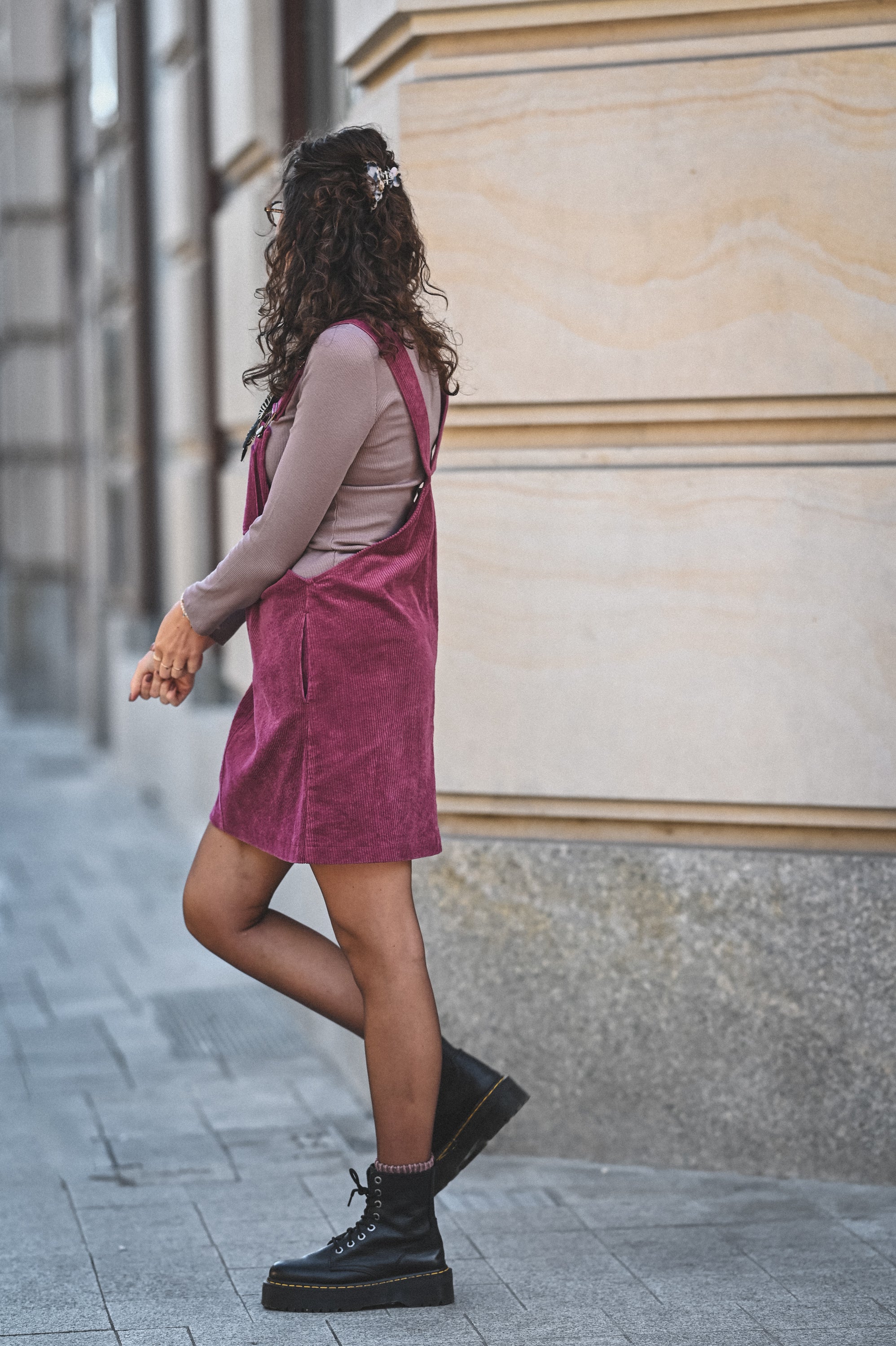 Lekko retro, wygodna i stylowa – ta sztruksowa sukienka ogrodniczka to must-have w każdej codziennej szafie. Wykonana z miękkiego, przyjemnego w dotyku sztruksu, zachwyca prostotą i funkcjonalnością.