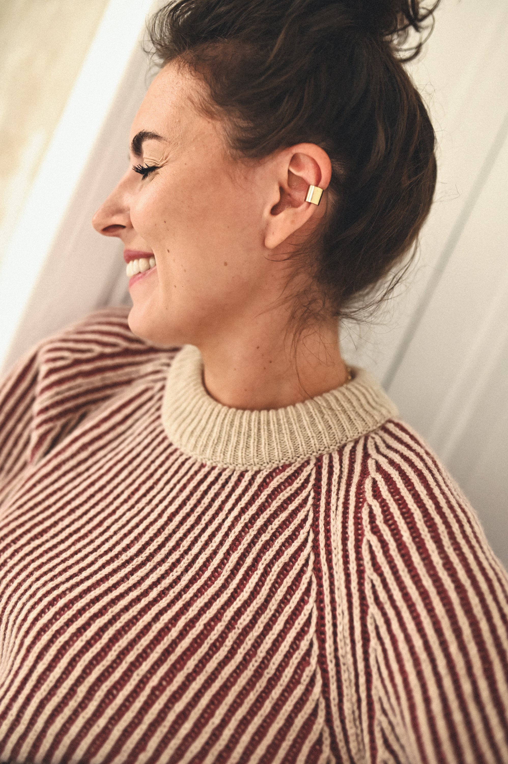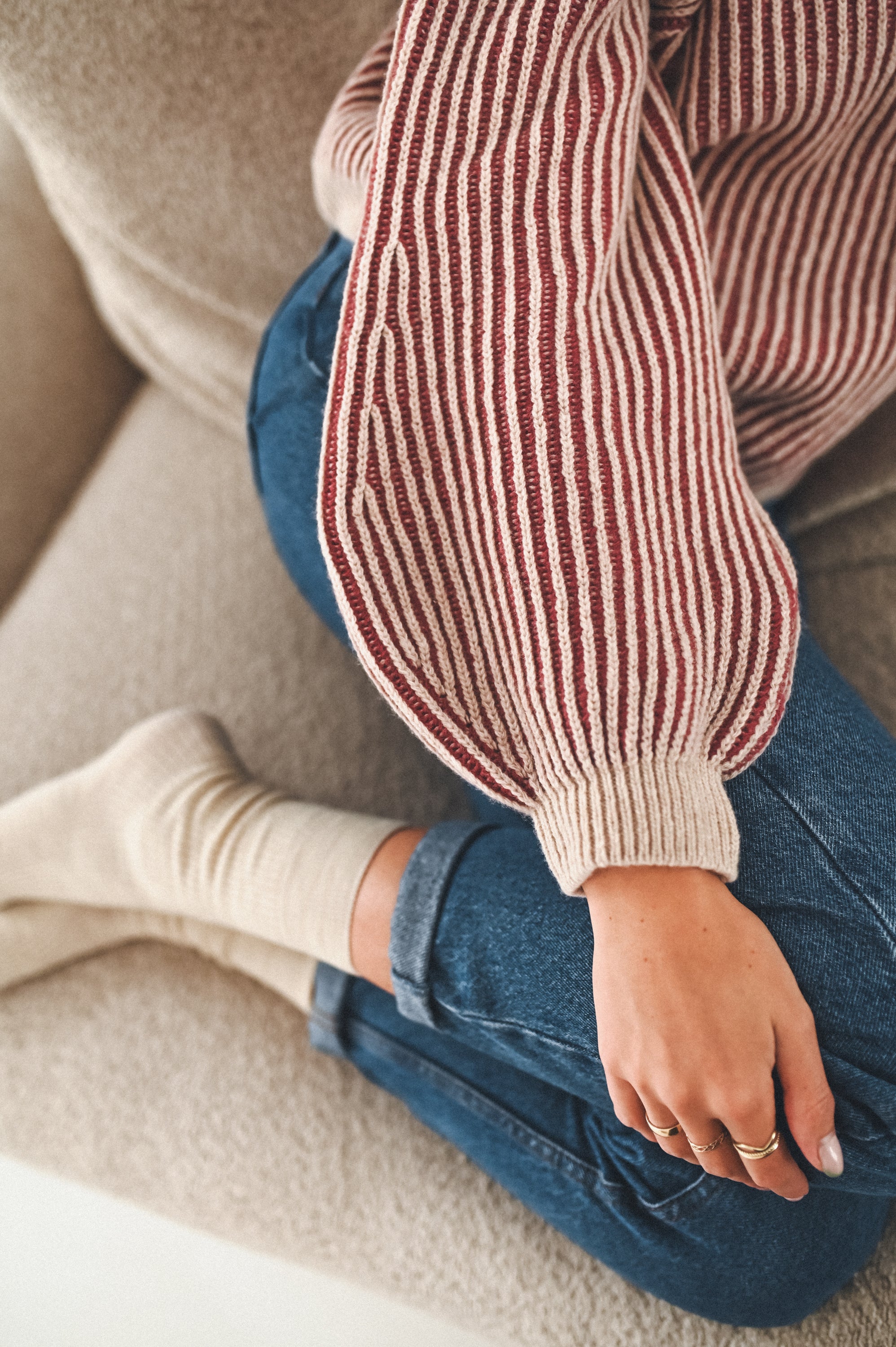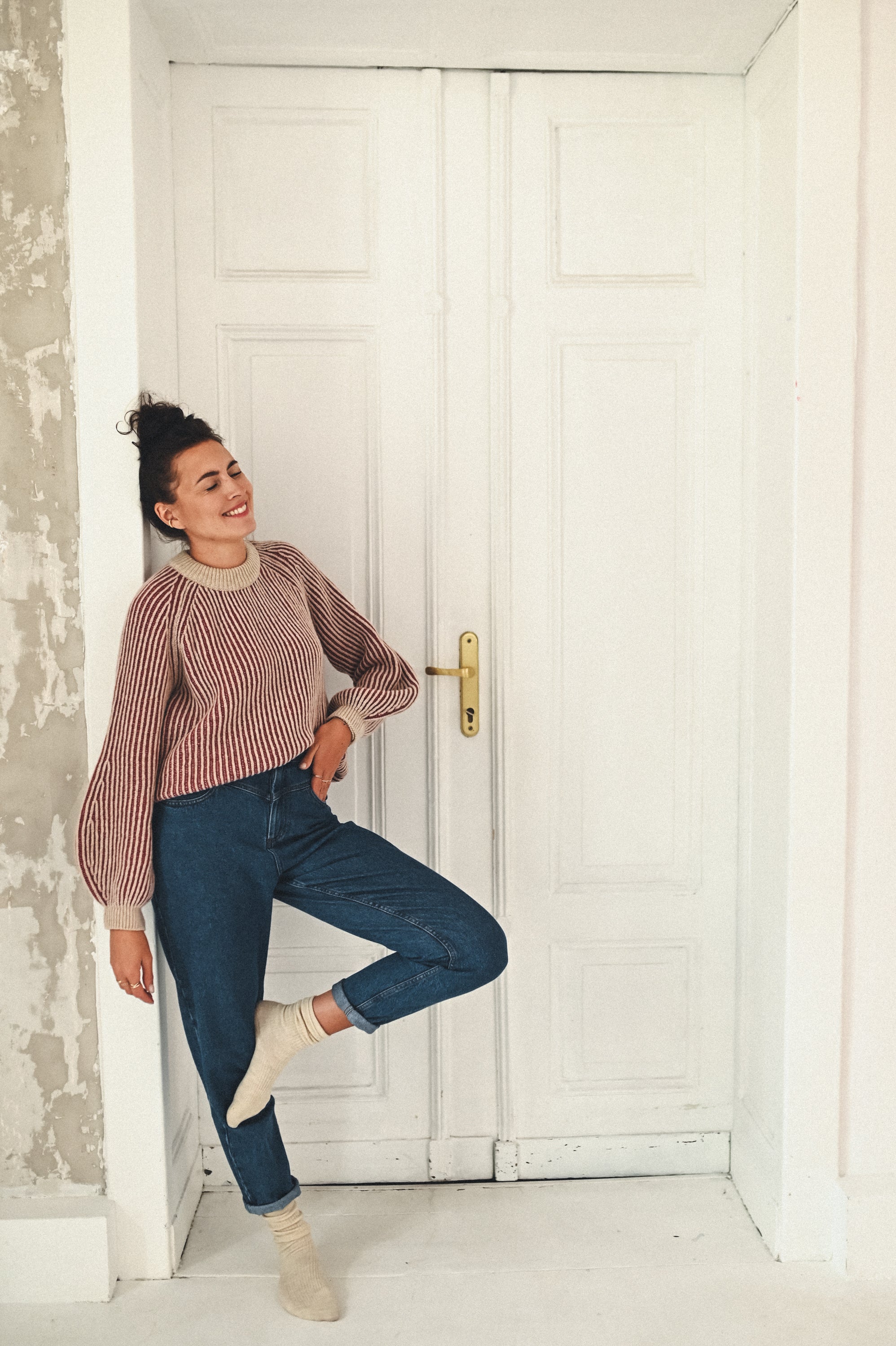 Dekolt typu crew neck nadaje mu uniwersalny charakter, idealny zarówno do codziennych, jak i bardziej eleganckich stylizacji. Lekko bufiasty rękaw zakończony delikatnym ściągaczem wprowadza miękką formę i kobiecy akcent, nie tracąc przy tym prostoty fasonu.