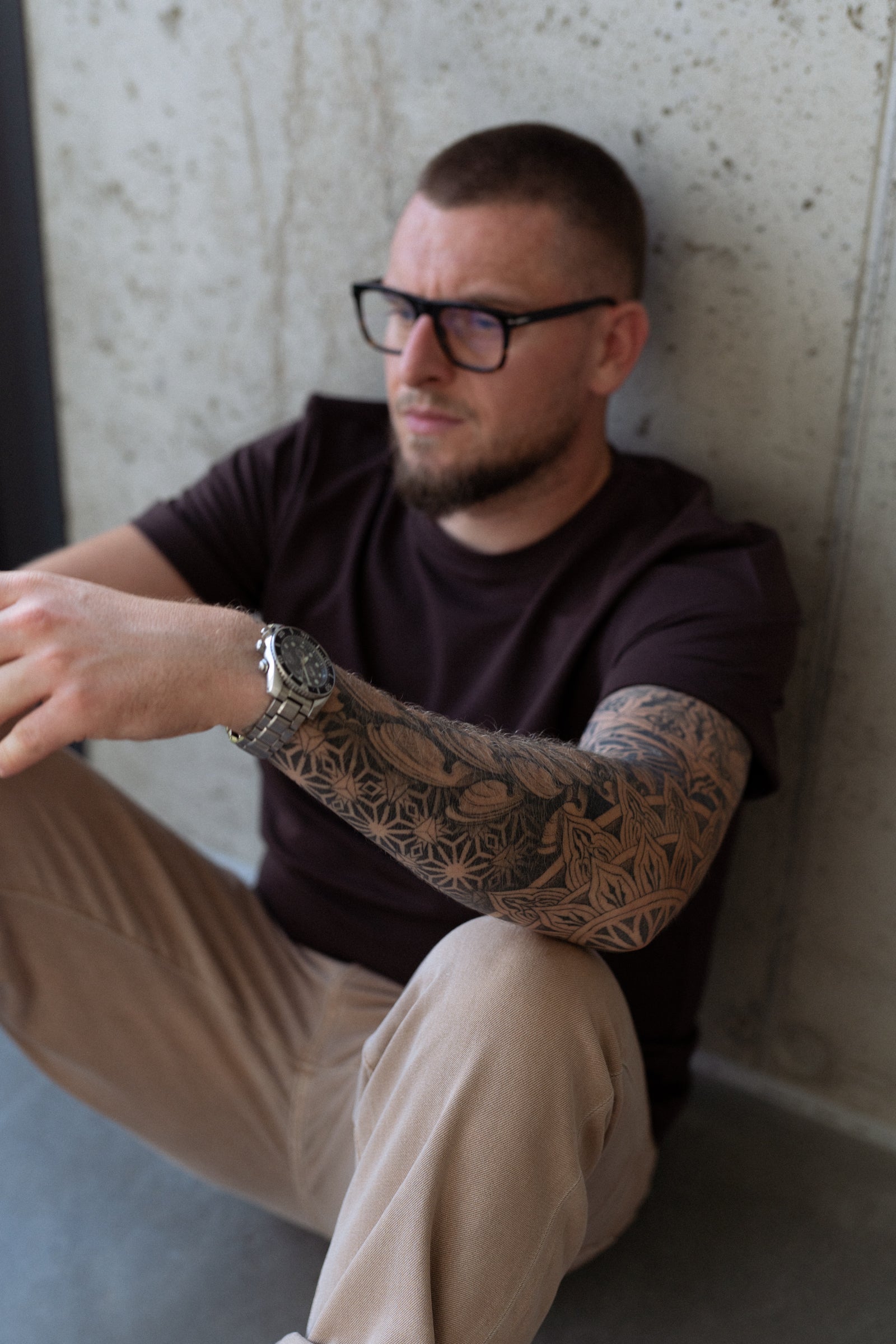 Klasyczny męski t-shirt o lekko oversizowym kroju, który łączy komfort z modnym wyglądem. Krótkie rękawy z subtelnym wywinięciem oraz okrągły dekolt dodają mu charakteru, a materiał z mięsistej bawełny organicznej z dodatkiem elastanu zapewnia wygodę i swobodę ruchów. Dzięki swojej uniwersalności, doskonale sprawdzi się jako baza do wielu stylizacji przez cały rok – od casualowych po bardziej eleganckie. Idealny wybór na co dzień, łączący prostotę z nowoczesnym stylem.
